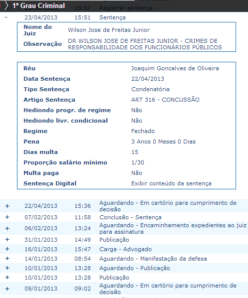 “Tendo em vista que, como já fundamentado, se trata de crime praticado com abuso de poder, contra a administração pública e, ainda, em clara violação dos deveres funcionais do acusado e que a pena privativa de liberdade aplicada foi fixada em montante superior a 01 (um) ano, determino, como efeito da condenação e após seu trânsito em julgado, a perda do mandato eletivo, nos termos do art. 92, do Código Penal”.