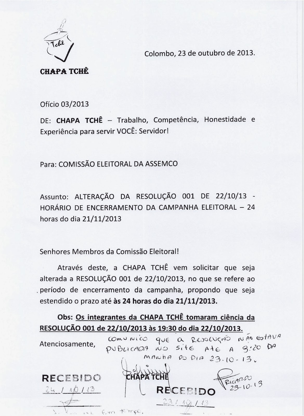 CHAPA TCHÊ FOI IMPUGNADA E ESTÁ FORA DA ELEIÇÃO DA ASSEMCO