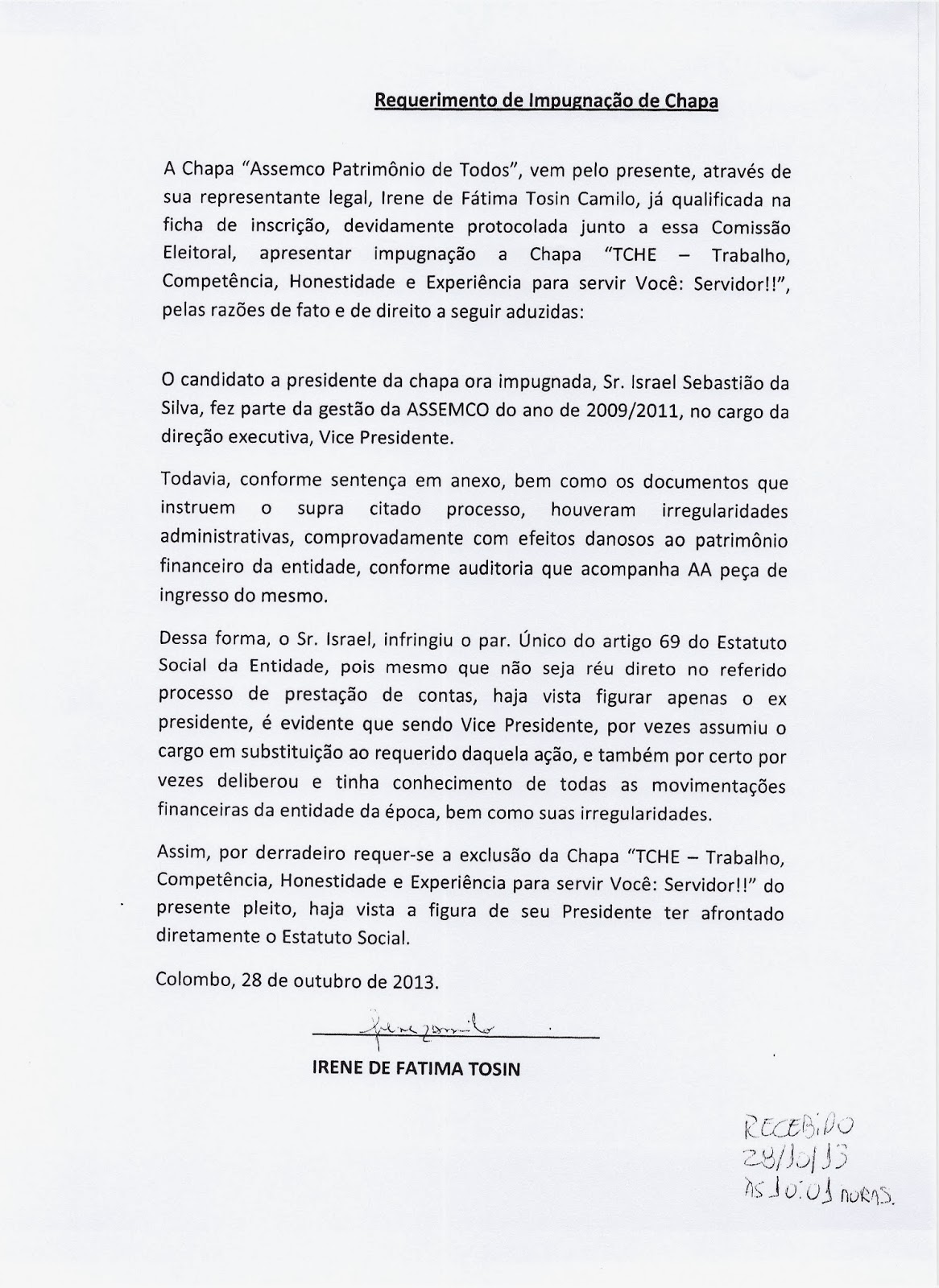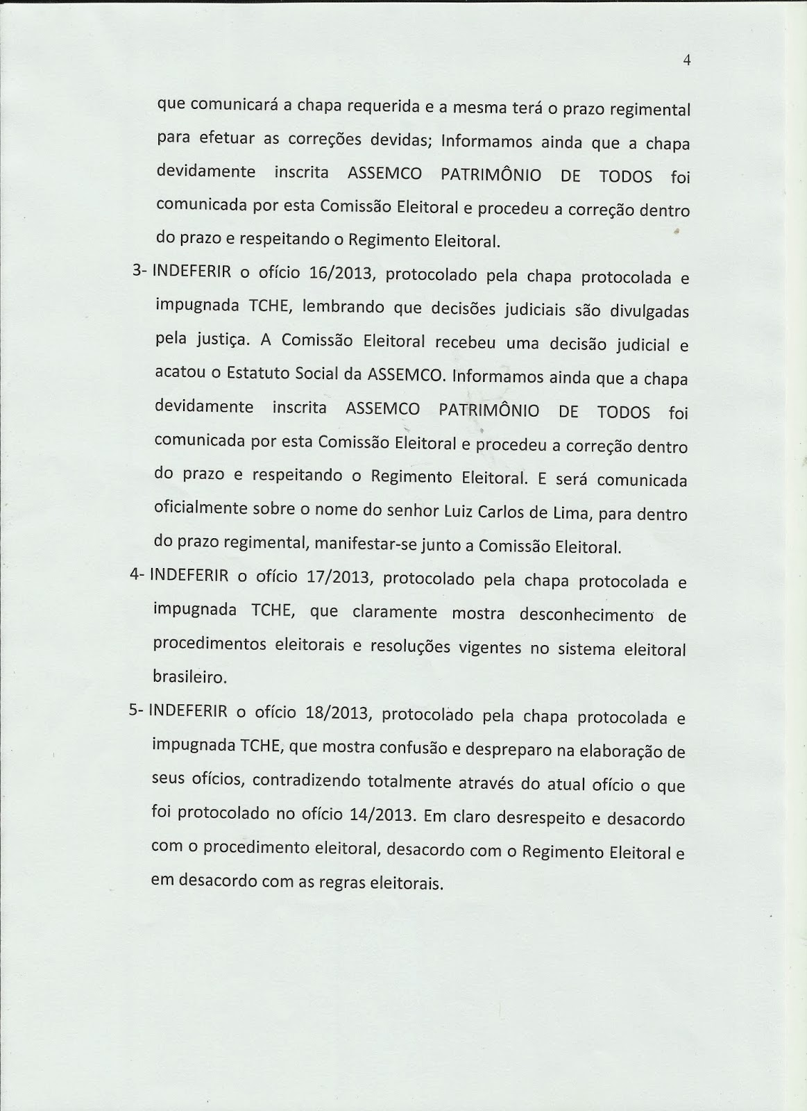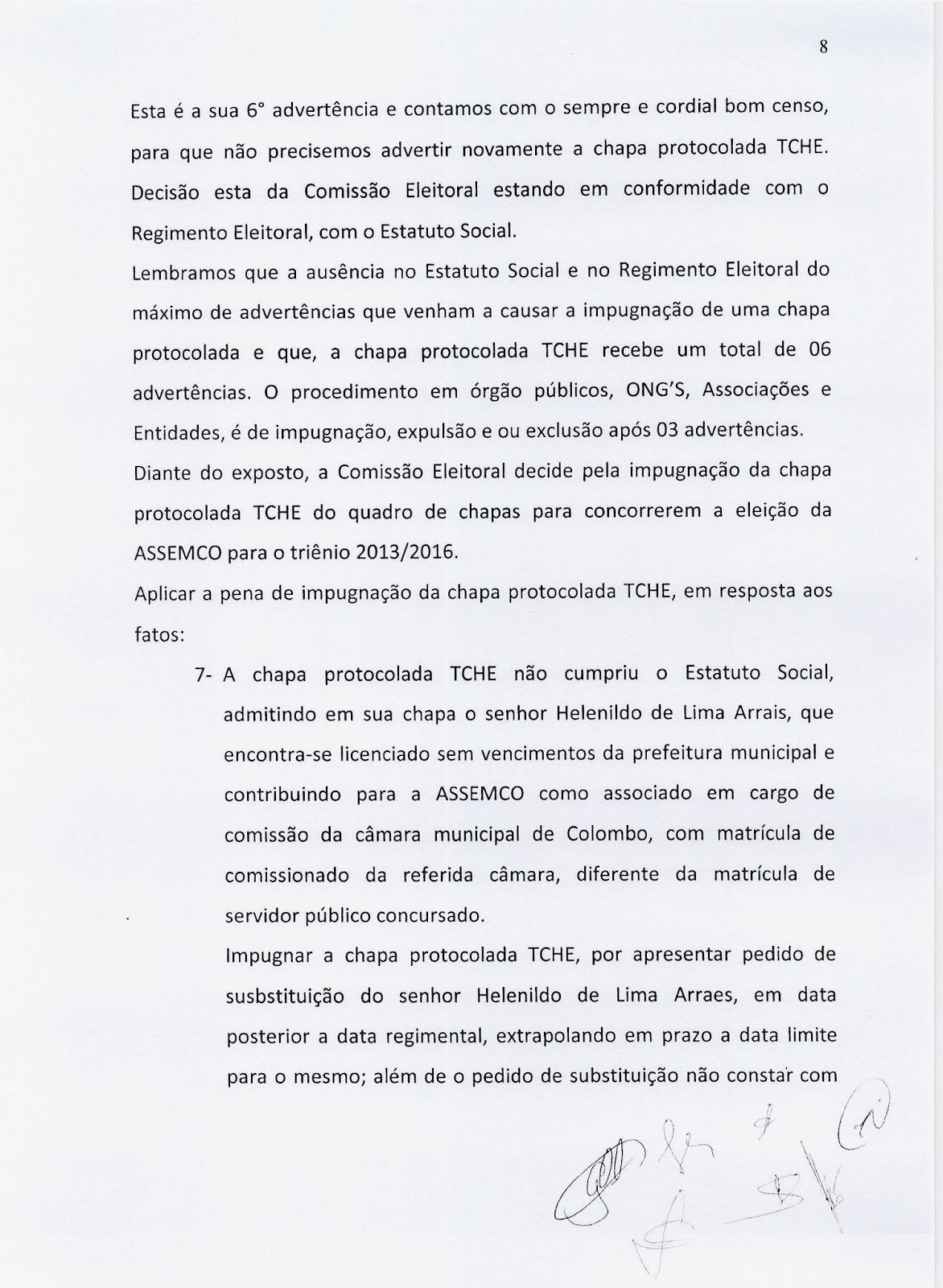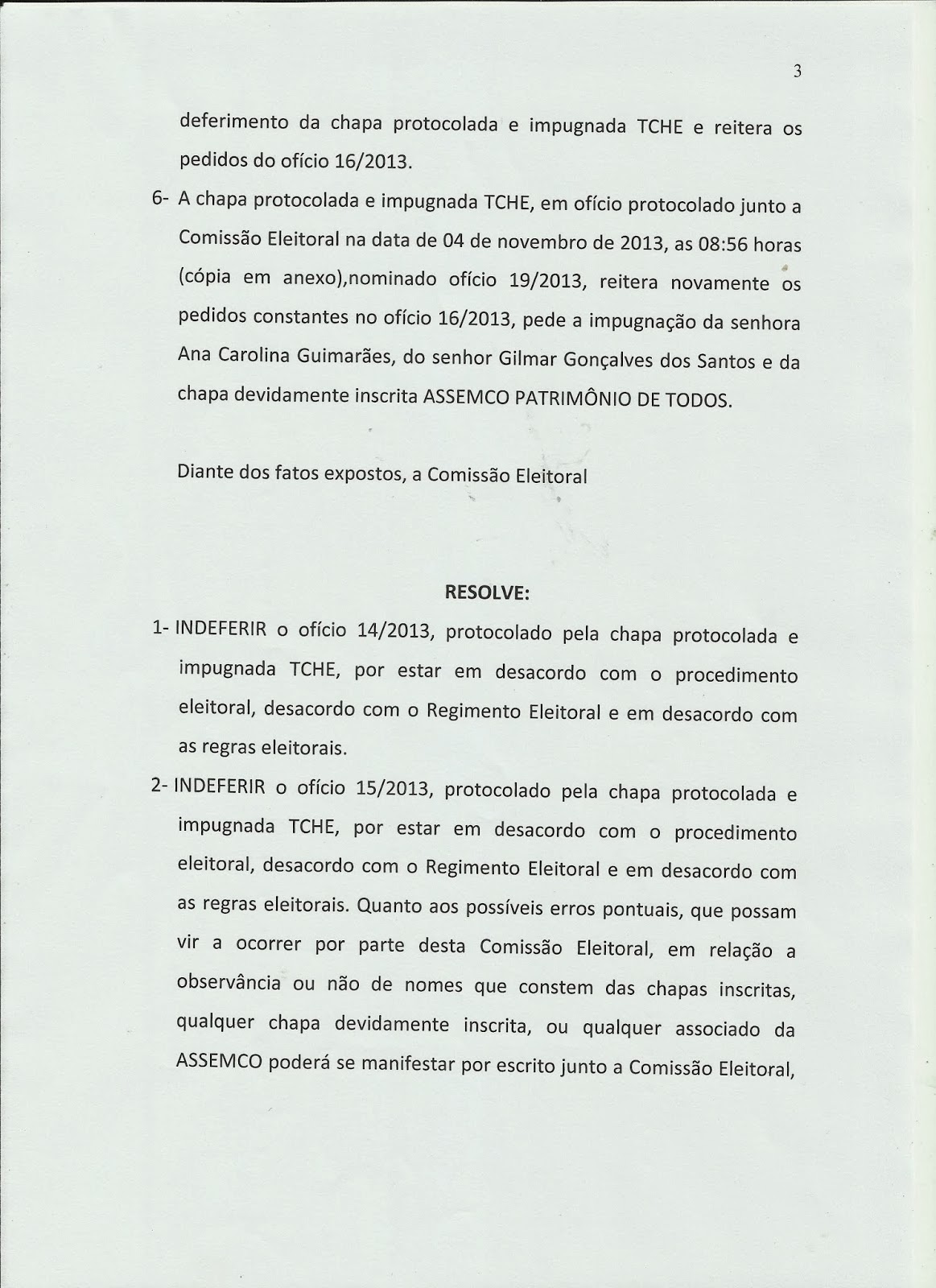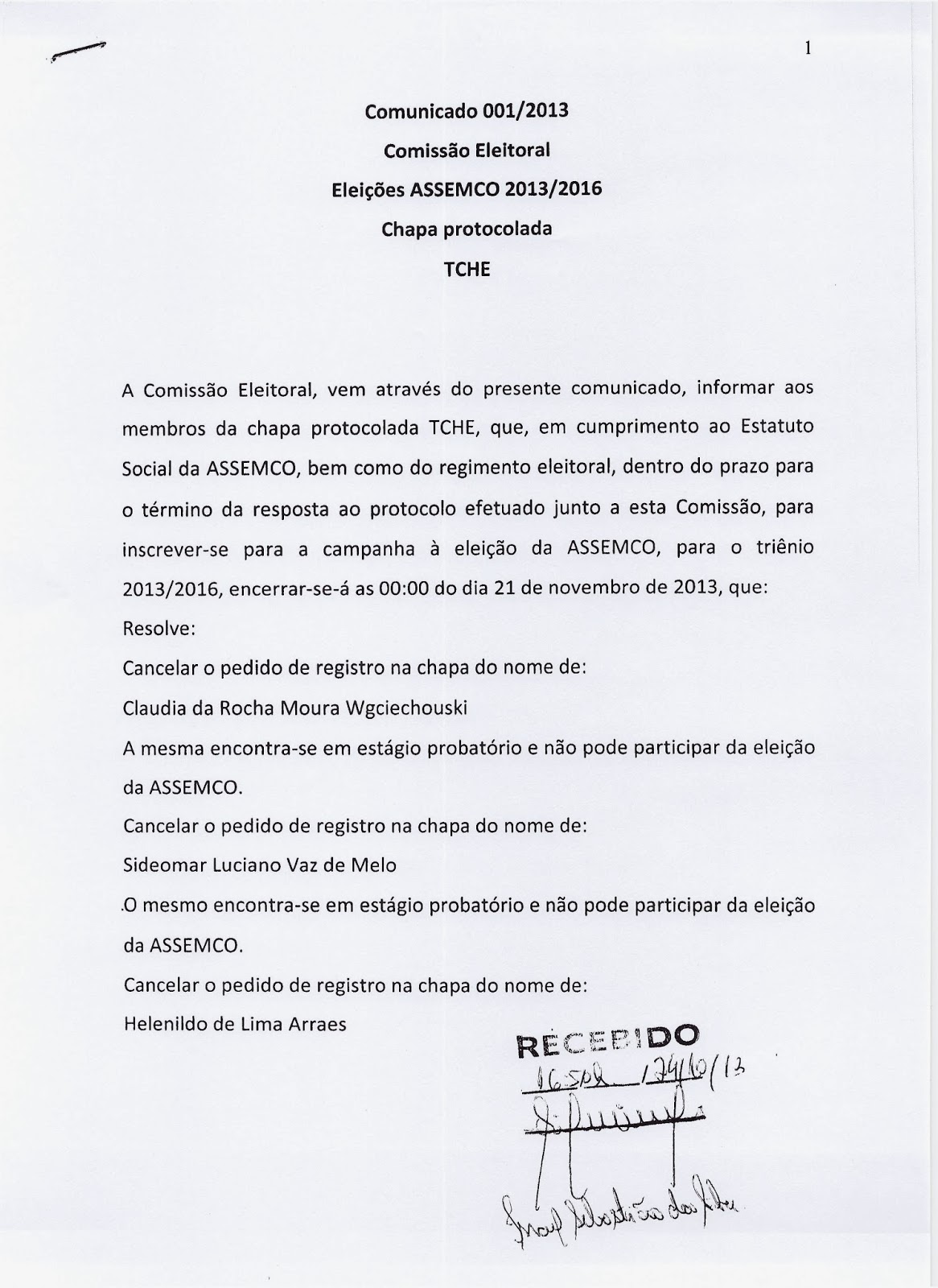 A chapa TCHÊ, “ficou sem cuia e o chimarrão virou um tereré”, pois não conseguiram se adequar as normas do Estatuto Social da ASSEMCO e foram IMPUGNADOS, segundo declaração da Comissão Eleitoral, através do seu presidente Wilson Vieira, a Chapa TCHÊ, desrespeitou os prazos legais estipulados, fez propagando eleitoral antecipada, entre outras irregularidades, por isso foi ELIMINADA.
