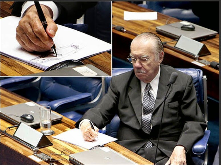 Que memória! “Sarney desenha corpo de mulher durante sessão”