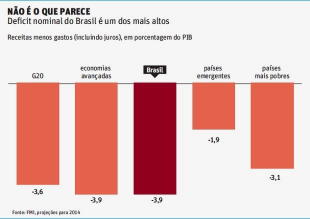 O Brasil iniciou em 1999 a política de metas de superavit primário porque os juros nacionais e os encargos da dívida pública não têm paralelo entre as principais economias do mundo. Esse dado põe em xeque a argumentação da presidente Dilma Rousseff segundo a qual o desempenho fiscal do país, em aguda deterioração neste ano eleitoral, é melhor que o da grande maioria dos países do G20.
