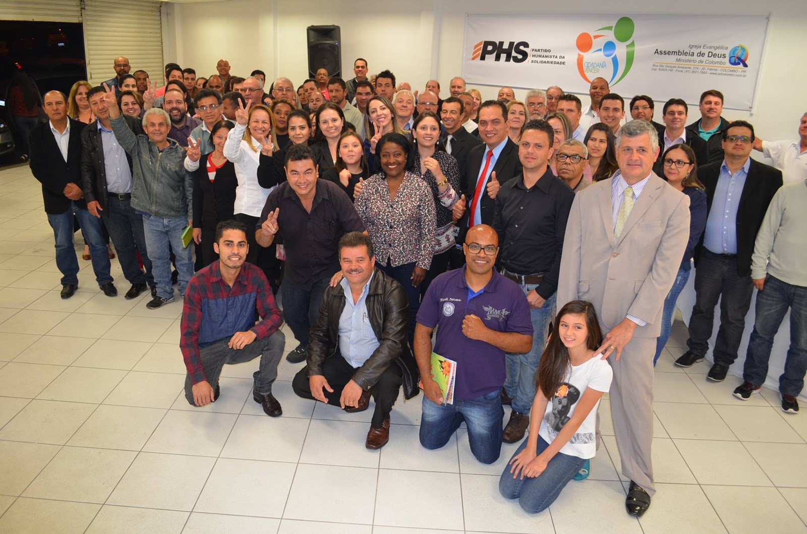 O presidente da AD Colombo, pastor Edilson Siqueira, idealizador do Projeto Cidadania Vencer, projeto político da igreja Assembleia de Deus – Ministério de Colombo, falou de sua satisfação em participar da convenção municipal. Este projeto é parceiro do PHS no município. Edilson Siqueira conclamou aos candidatos para fazerem uma campanha limpa e exemplar a partir de 16 de agosto quando terão suas candidaturas oficialmente registradas e liberadas. Demais lideranças do projeto também discursaram em apoio ao partido PHS, depositando confiança em cada nome indicado pelo projeto Cidadania Vencer e homologados nesta convenção.