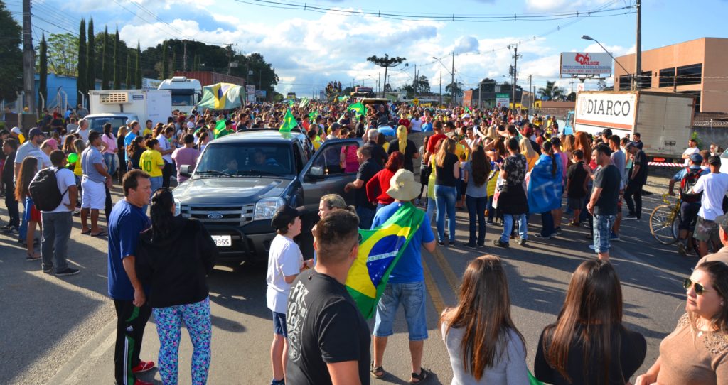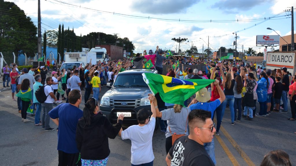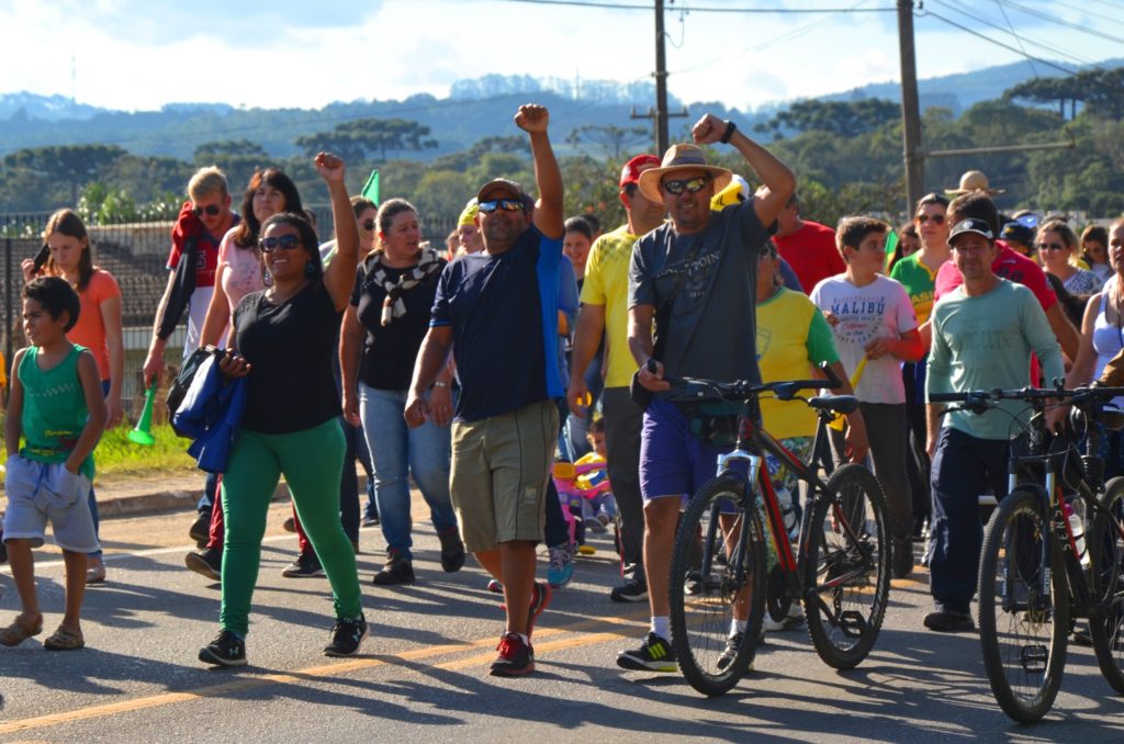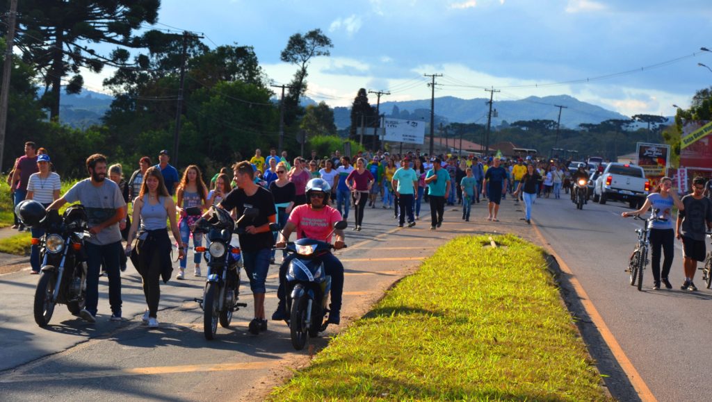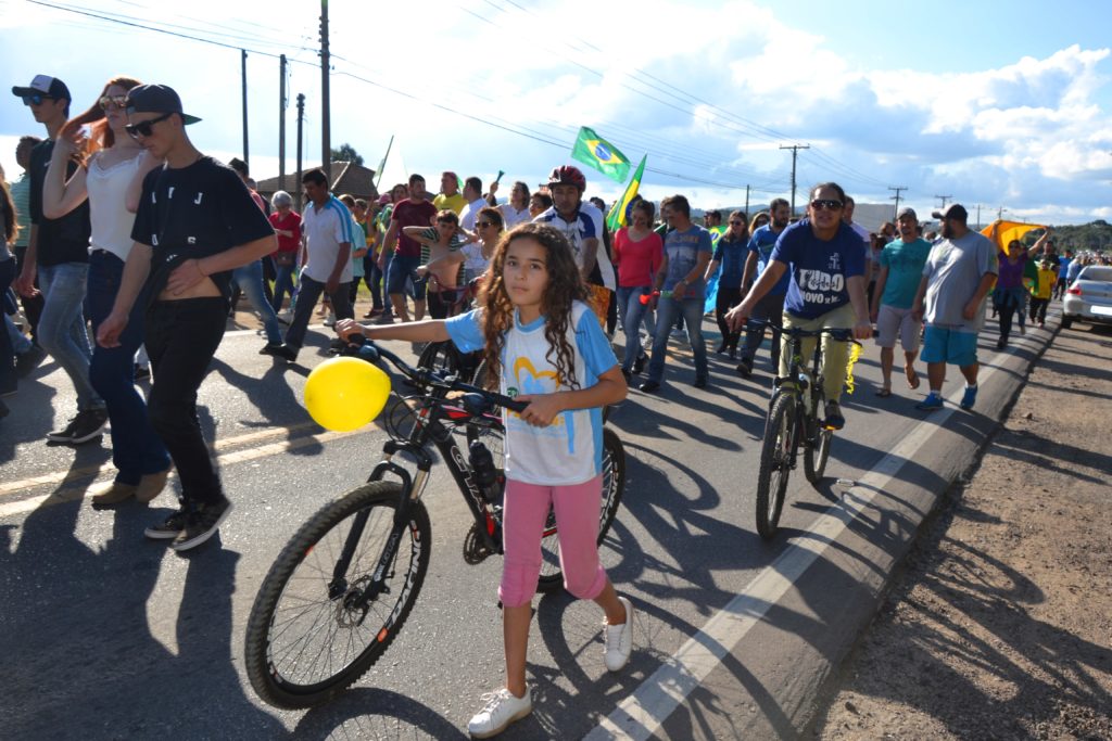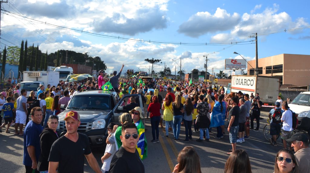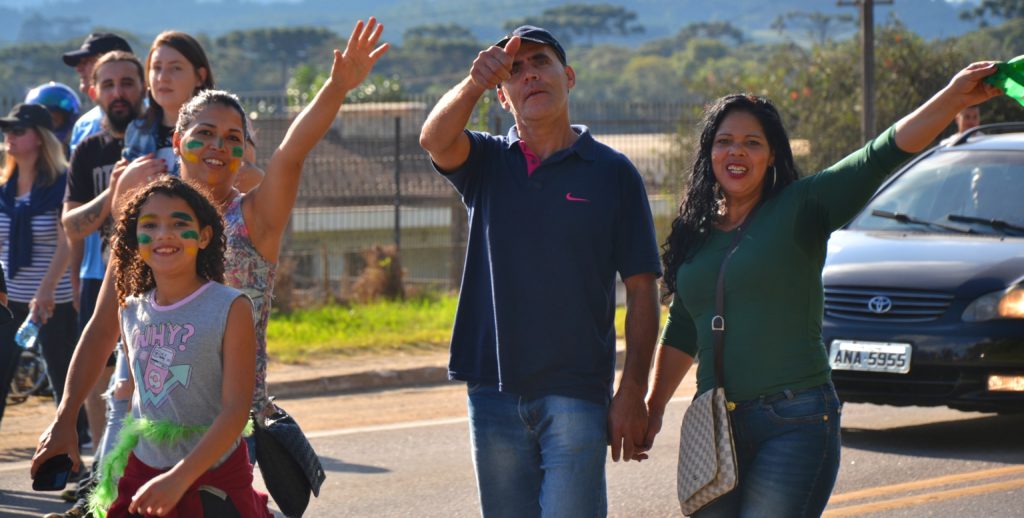 Os laços de família e as cores da bandeira brasileira coloriram e deram brilho à Rodovia da Uva na tarde deste domingo em Colombo. As esposas de caminhoneiros e de agricultores do município entram para a história ao realizarem uma passeata pacífica para demonstrar apoio à categoria de caminhoneiros em greve e por um Brasil melhor que proteja os direitos dos trabalhadores, que haja redução de impostos e respeite a Família brasileira.