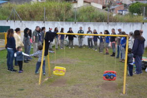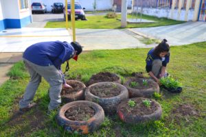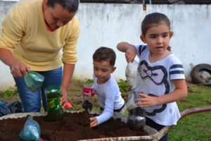 A ação de sábado, “Projeto Laços de Amor” Horta, foi trabalhada em conjunto com a coordenadora pedagógica Cristiane Chagas, Davina de Oliveira ( confecção das garrafas coloridas), Rose Shaffer (arrecadou através de campanha as garrafas pets) e Patrícia Almeida Andrade que auxiliou no plantio. Para auxiliar na construção da horta, o CMEI contou com a colaboração do Sr.  Jose Erondi Meira, pai de aluno do Aquarela.