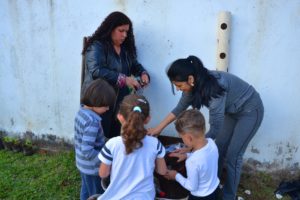 Em outro momento ainda em 2017 a equipe esteve em outros dois momentos no CMEI, em agosto em comemoração ao dia do nutricionista com atividades lúdicas( teatro) , degustação de alimentos saudáveis e no outro momento juntamente com a equipe de agente comunitário de saúde do posto de saúde, com um tema solicitado pelo cmei compareceram para falar sobre o piolho, de forma lúdica com teatro. A palestra sobre piolho foi a primeira com participação dos pais, todas as demais foi para os alunos.