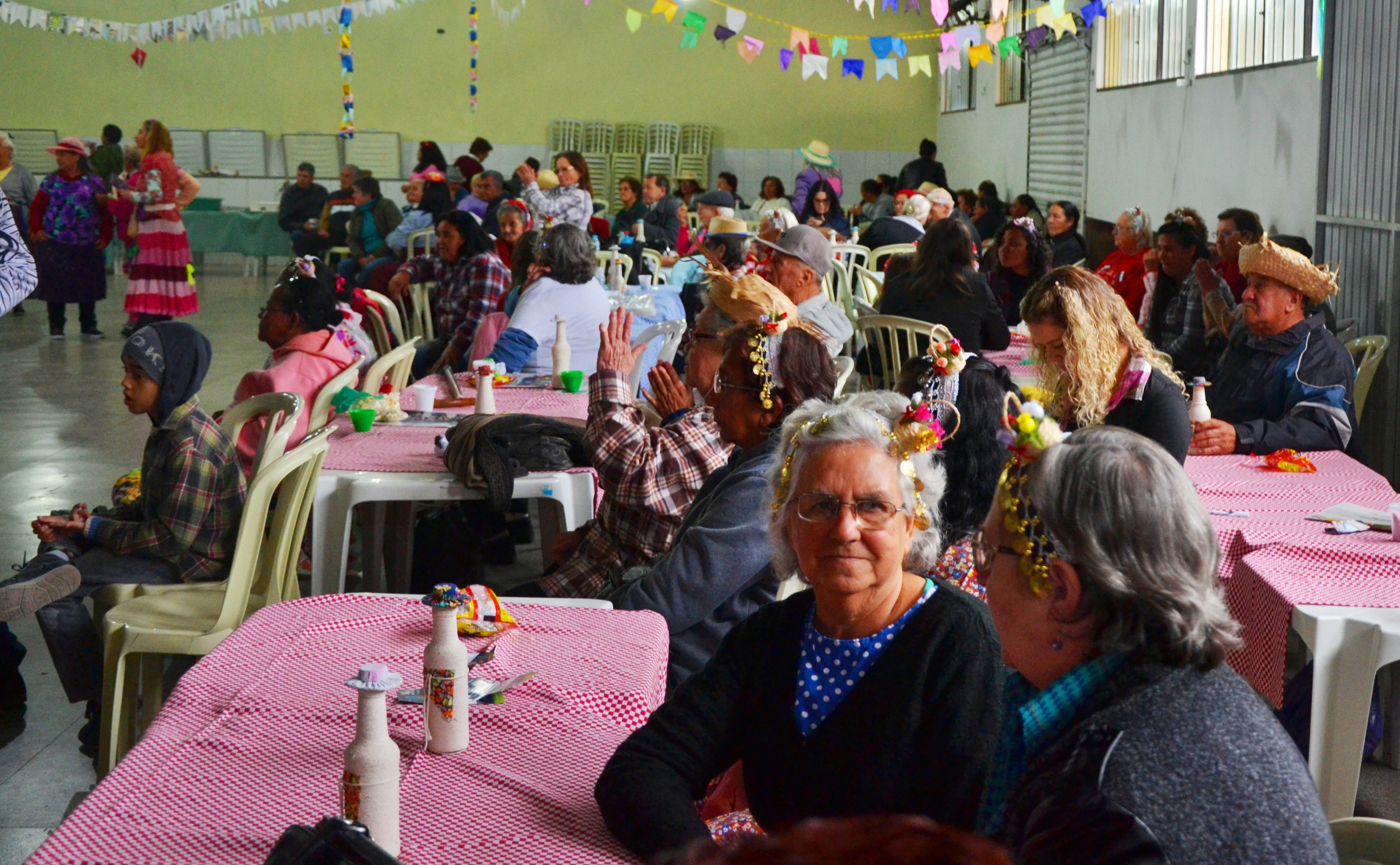 A tarde desta terça-feira (10/07) foi animada no salão de eventos da igreja São Paulo da Cruz que abrigou os Centro de Convivência Maria do Rosario, Lírio do Vale,e Jardim das Graças,Monte Castelo e Cras Guaraituba, em uma bonita festa junina com os meninos e as meninas da terceira idade. No melhor estilo arraiá, teve muita dança, pipoca, quentão sem álcool, bolo e apresentações de quadrilha e teatro. Se depender da animação teremos esse ano festa junina, Julina, Agostina e Setembrina… Vídeo da festa está disponível na Facebook do JORNAL BIC NOTÍCIAS. https://www.facebook.com/ivan.decolombo