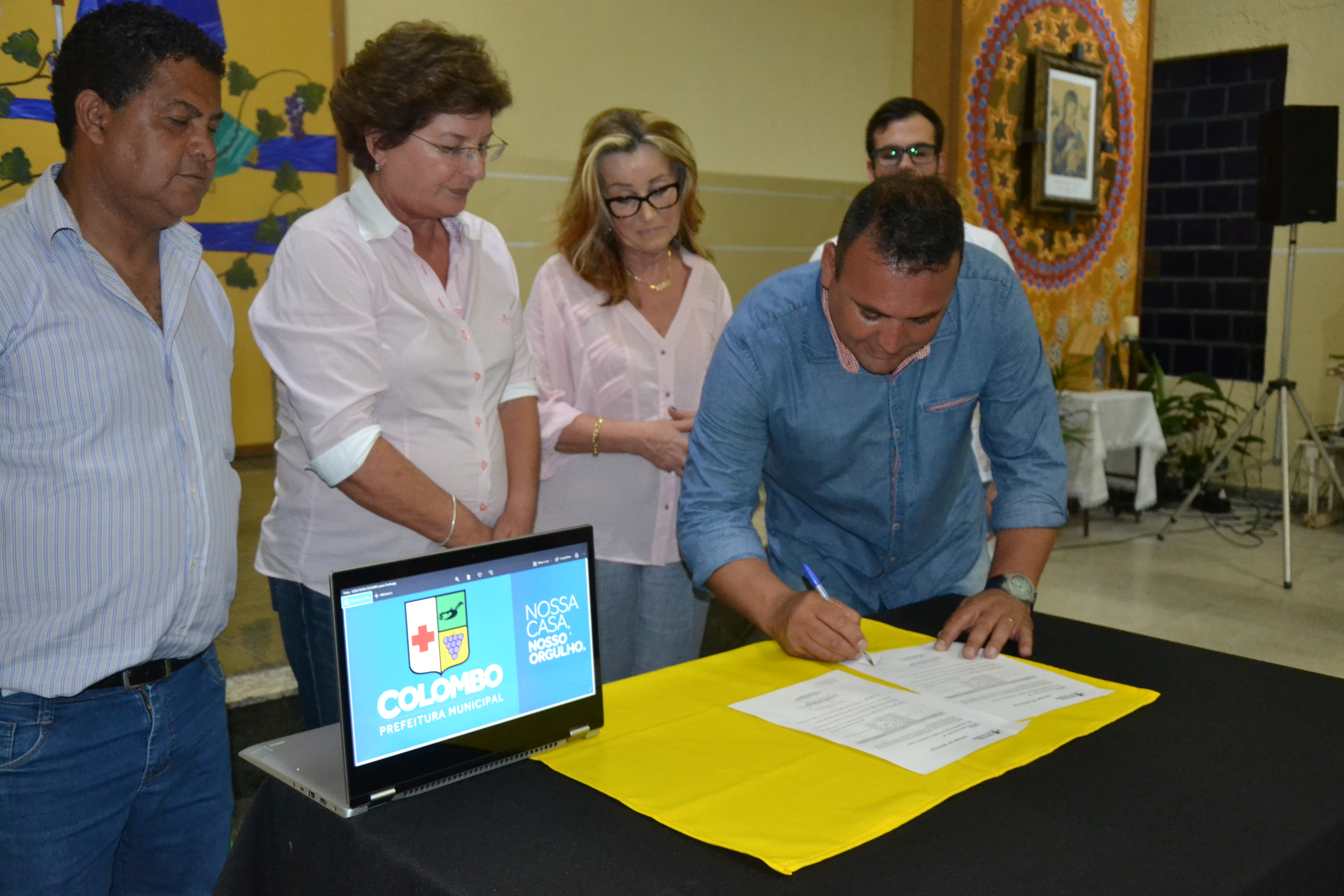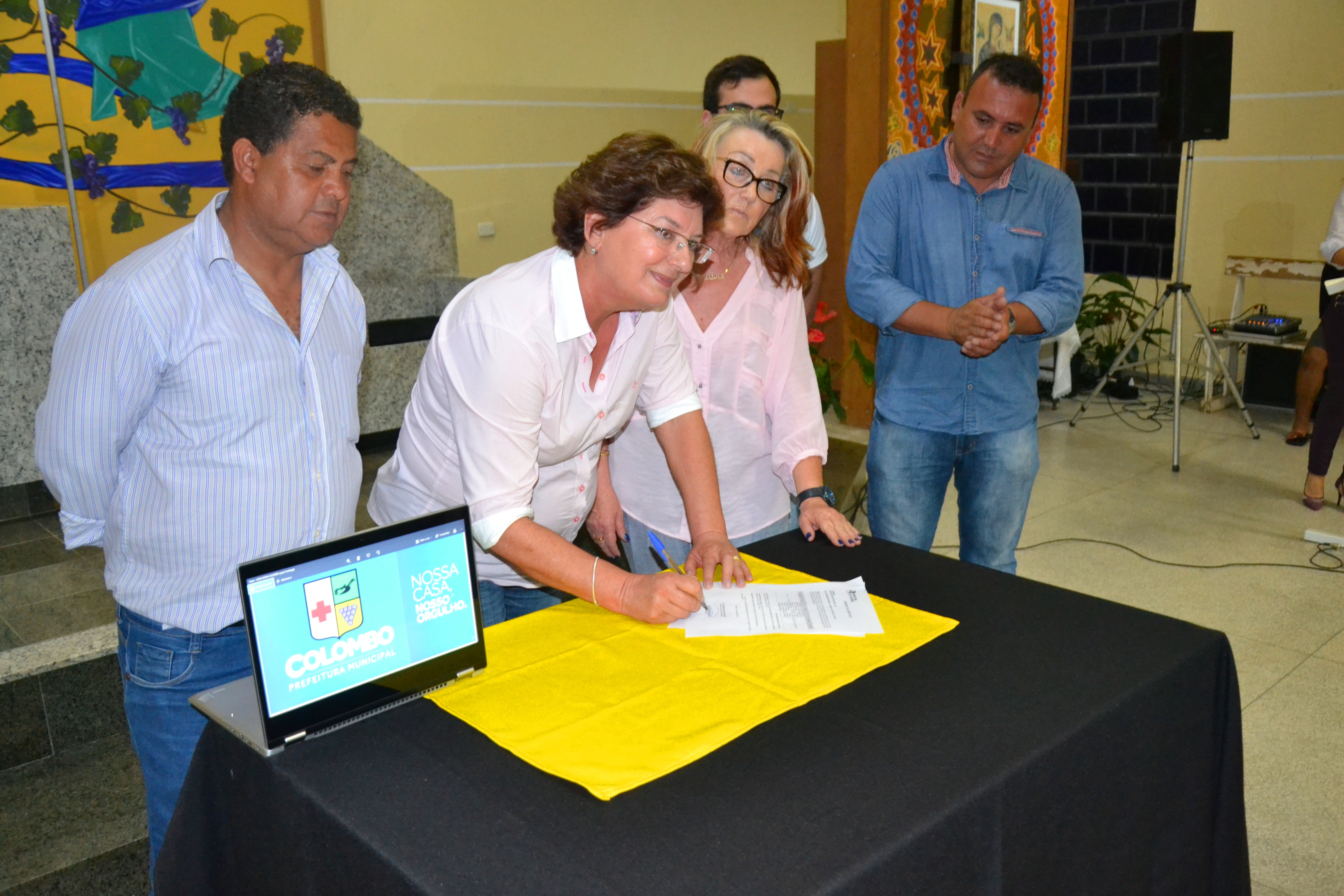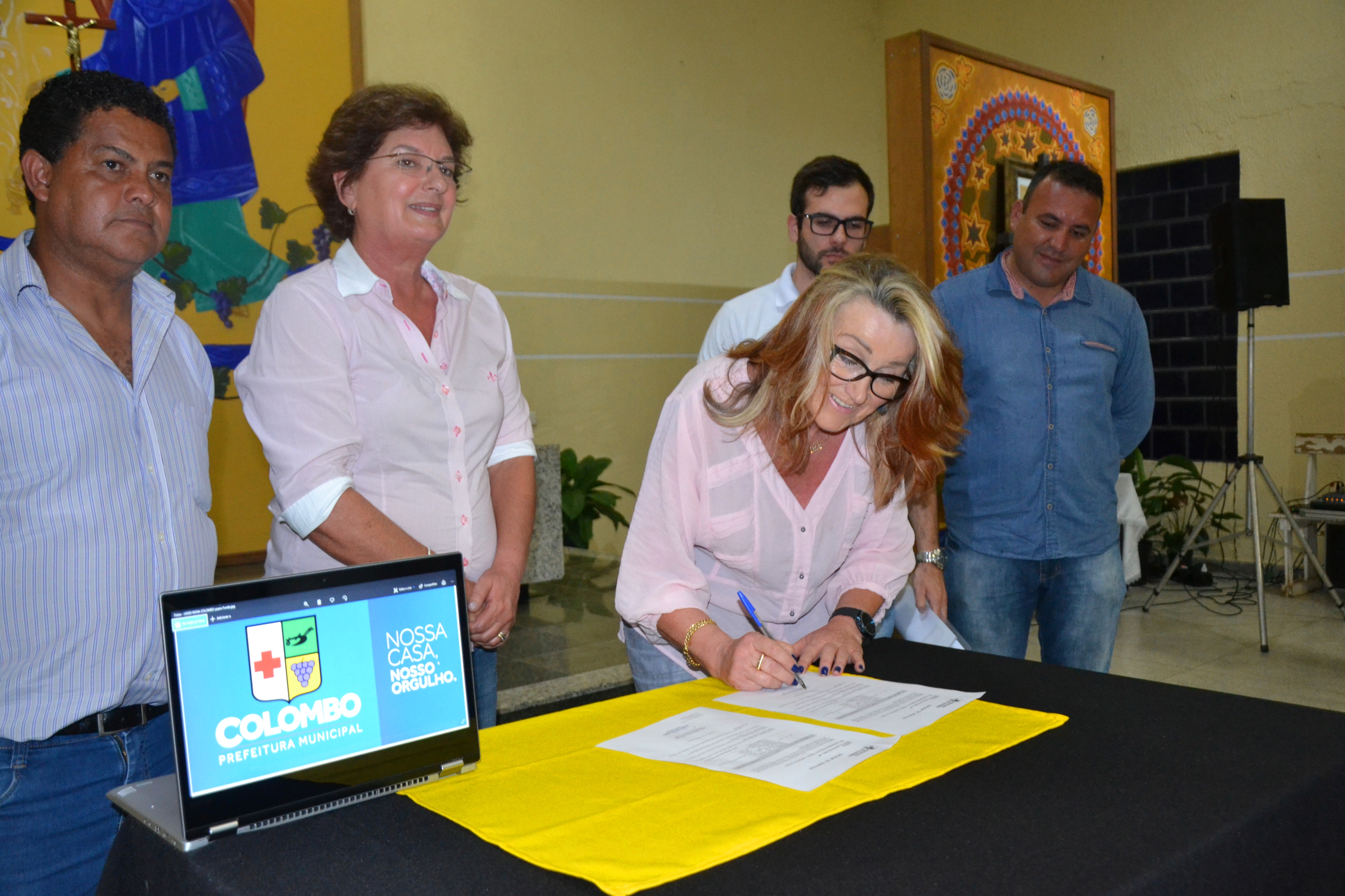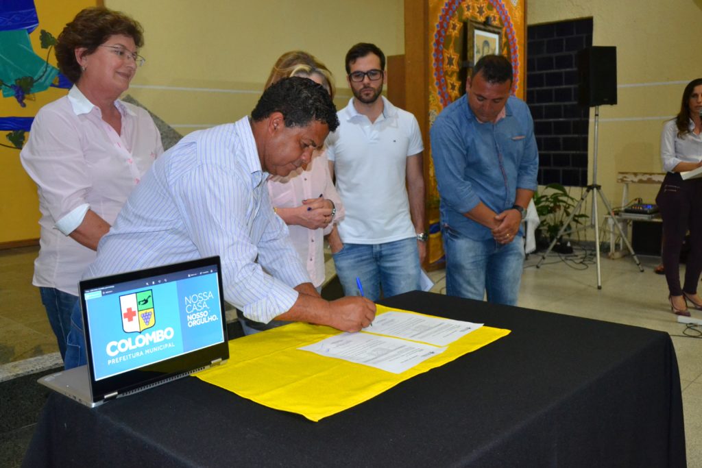 A prefeita Beti Pavin assinou nesta segunda-feira, 01, as ordens de serviço para a construção de dois novos Centros Municipais de Educação Infantil (CMEIs), em Colombo. A primeira solenidade de assinatura realizada na Igreja da comunidade N.S. Perpétuo Socorro, autoriza com início em até 10 dias, as obras de construção do CMEI do Jd. Eucaliptos irá atender 200 crianças da região. A nova unidade receberá investimentos da ordem de R$ 1.319.421,24 milhão, em uma área construída de 775,85m², na rua João D’Agostin, esquina com a rua Heitor Villa Lobos .