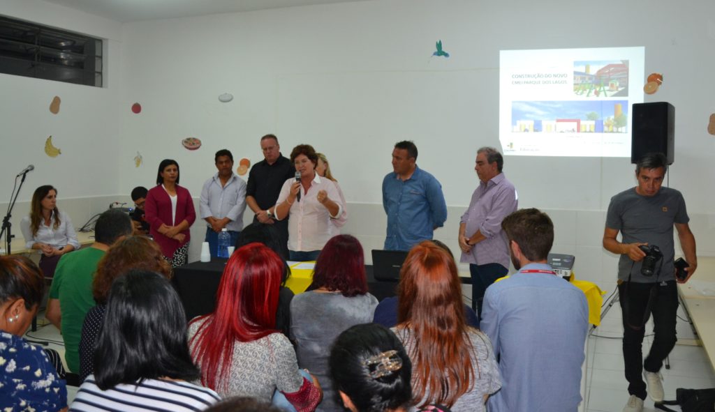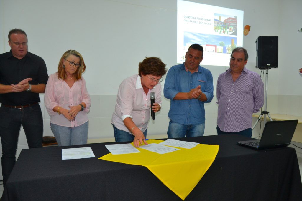 A segunda Ordem de Serviço foi assinada na Escola Municipal Zilda Arns, que autoriza a construção do Centro Municipal de Educação Infantil – CMEI, do Parque dos Lagos, localizado na rua Lago Passaúna, para atender crianças de zero a cinco anos.. O investimento é de R$ R$ 1.941.729,17 milhão, com capacidade de atender 300 crianças da região.“A construção destes CMEIs , mostra o compromisso que temos com a educação que sempre foi priorizada pela nossa administração”, disse a prefeita Beti Pavin.