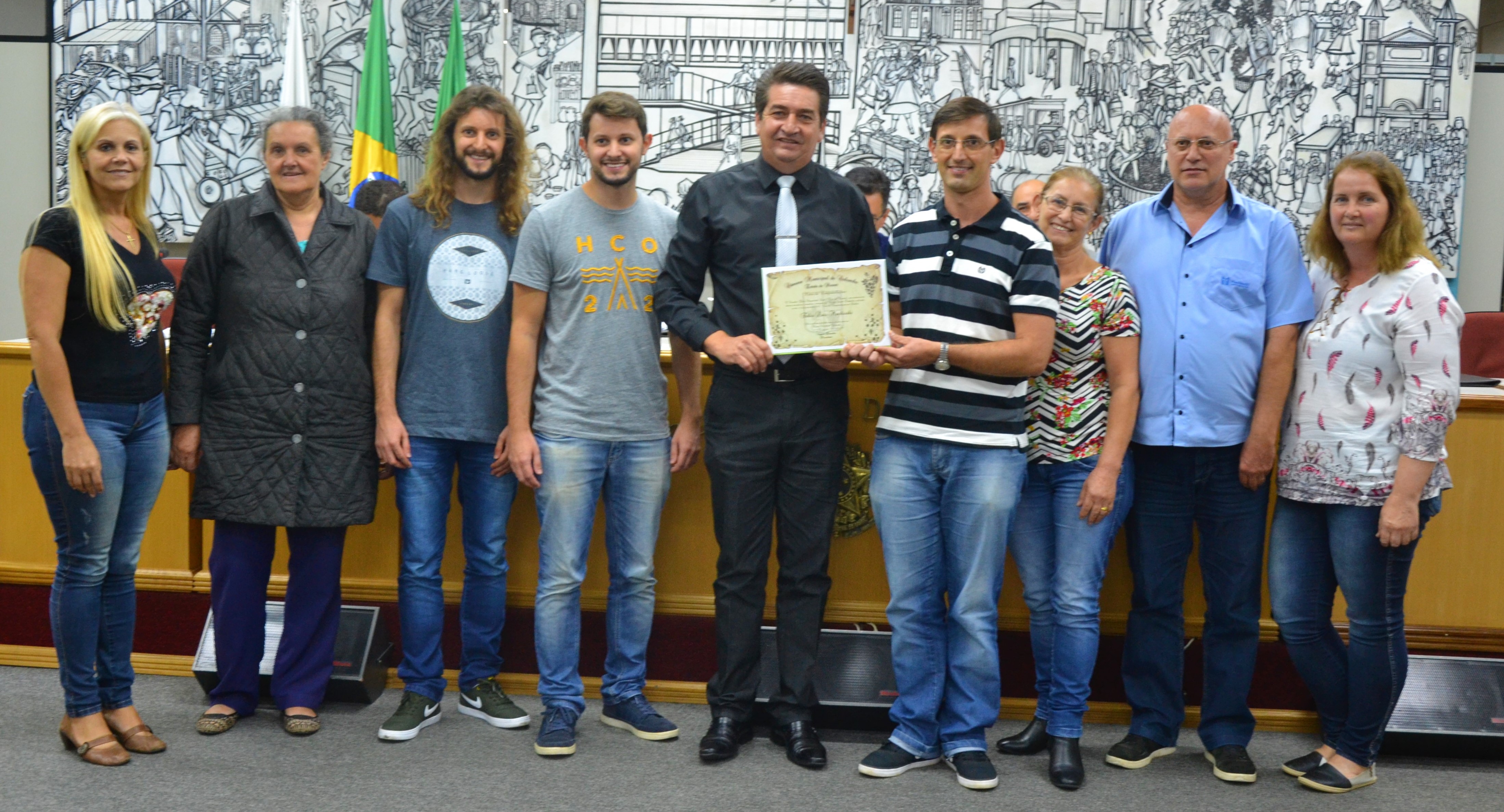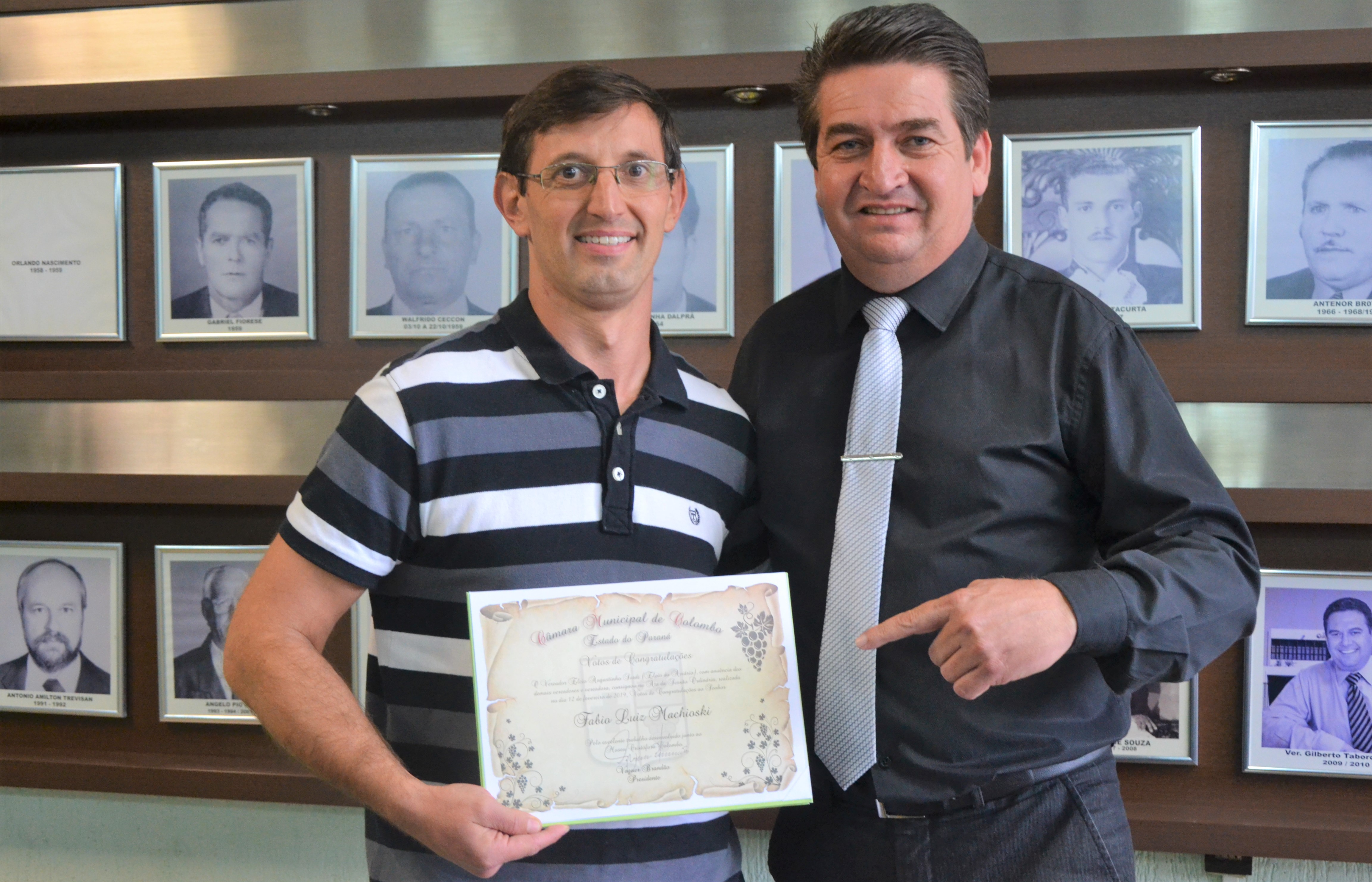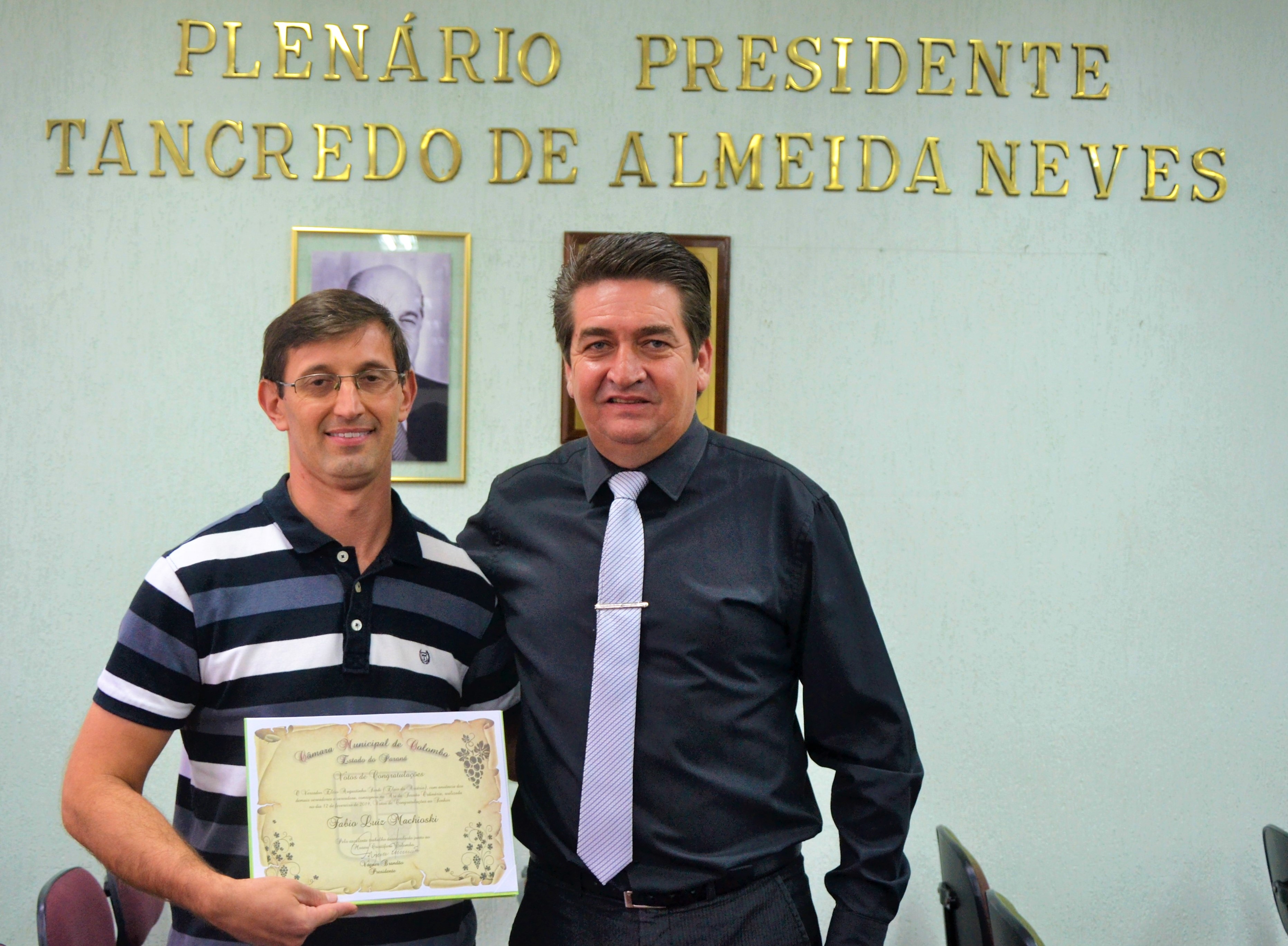 Em sessão ordinária realizada na terça-feira(26), presidida pelo presidente Vagner Brandão, por proposição do vereador Elcio do Aviário, o Coordenador do Museu Cristóforo Colombo, Fábio Luiz Machioski, recebeu Votos de Congratulações, pela sua participação na criação do museu e pelos relevantes serviços prestados à Cultura em Colombo.