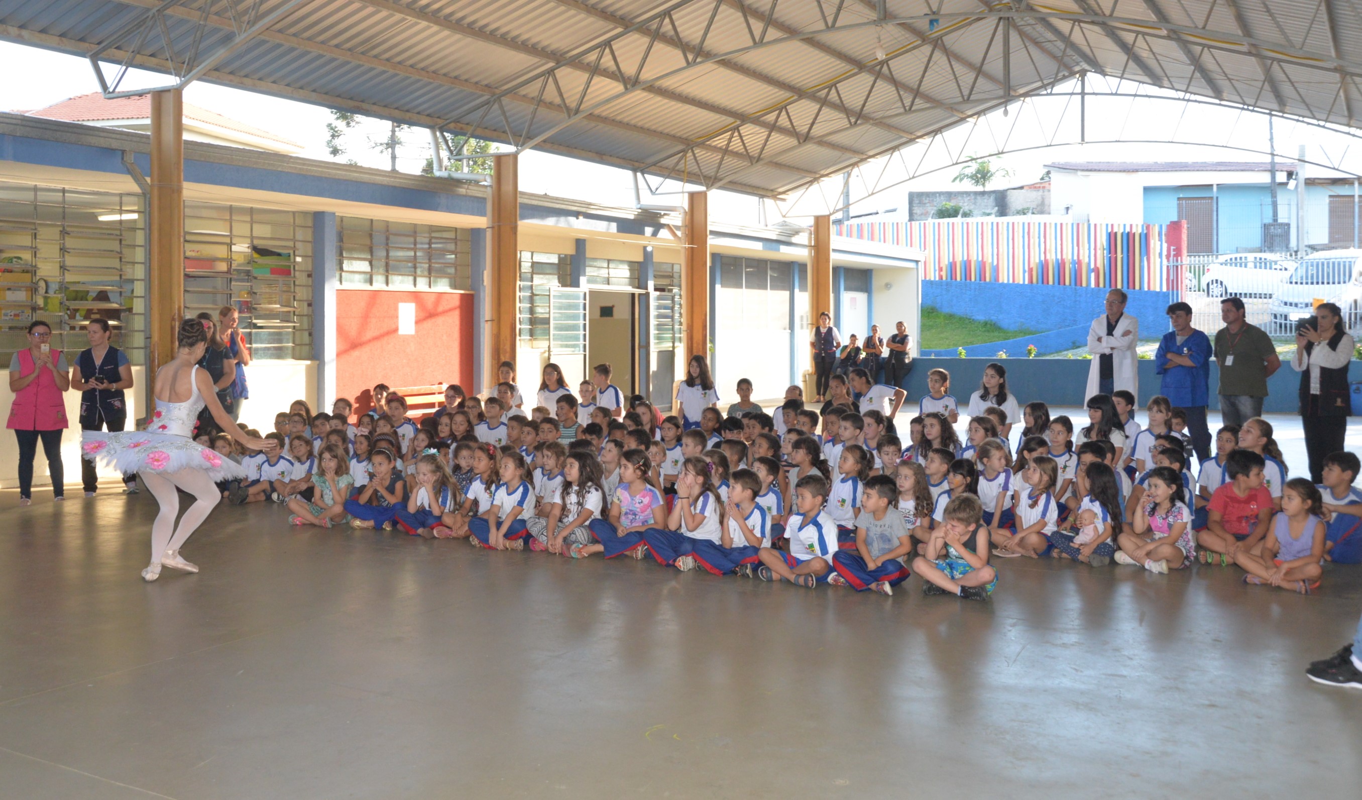 O evento terminou com uma linda apresentação da bailarina Gabrielle para todos os alunos da escola e visita a cada sala de aula para saudar as crianças. ” Em nome das professoras e alunos da Escola Municipal Jucondo D’Agostin, agradecemos a todos que colaboraram para a realização dessa atividade pedagógica que muito enriqueceu o projeto desenvolvido pelos alunos”, disse a diretora Luciane das Neves