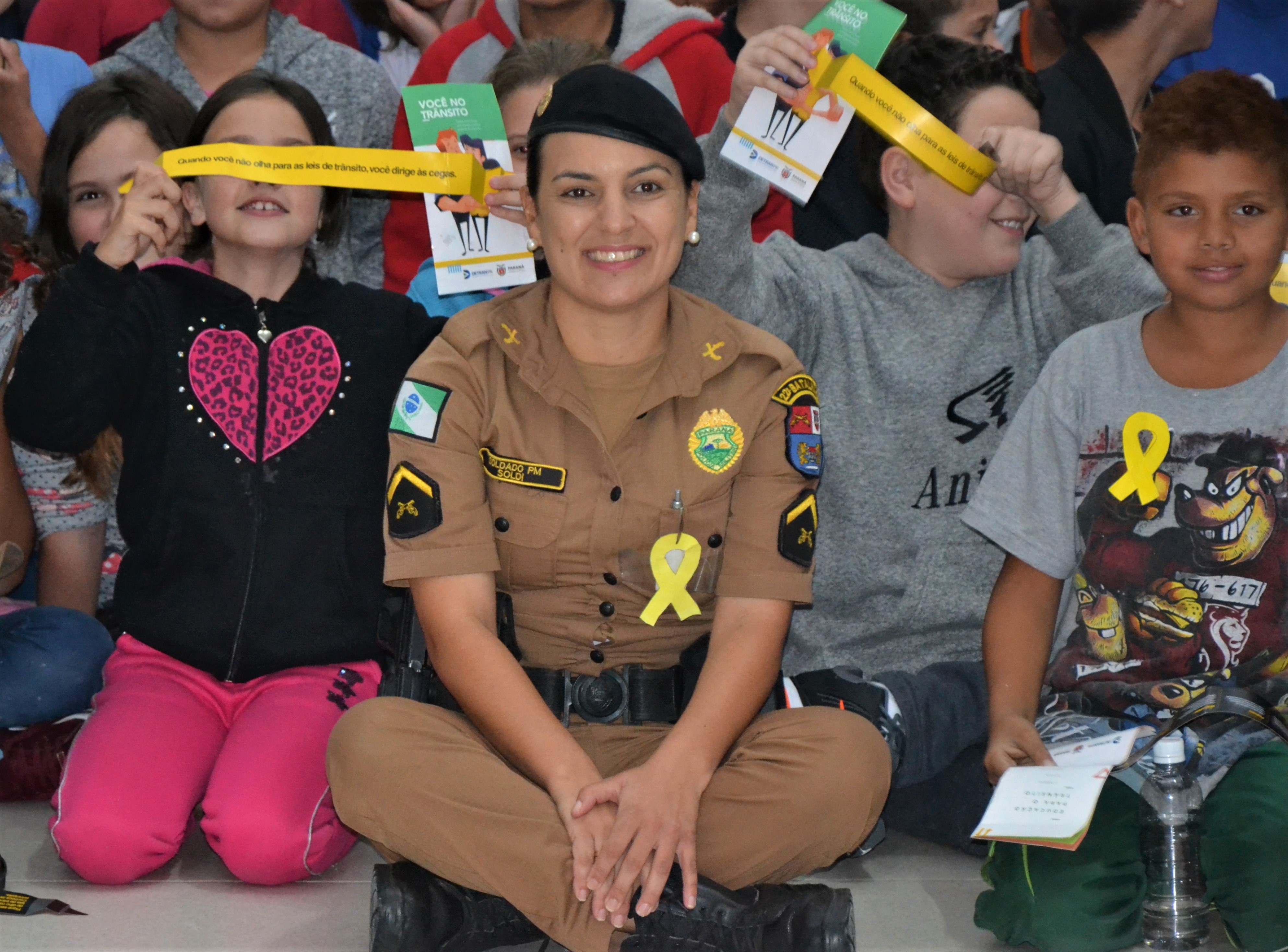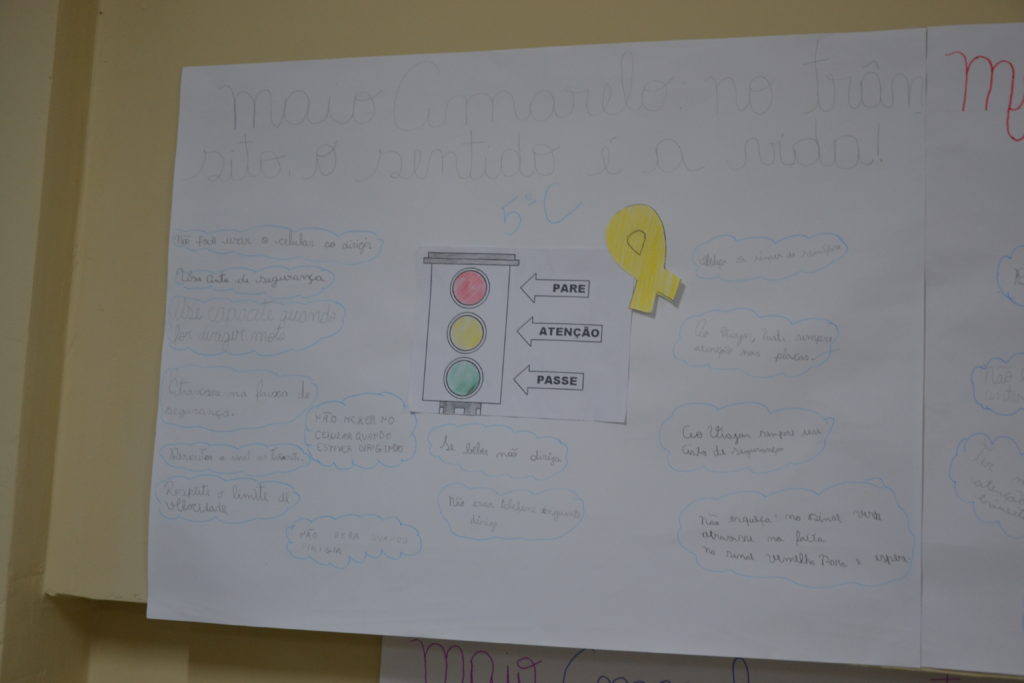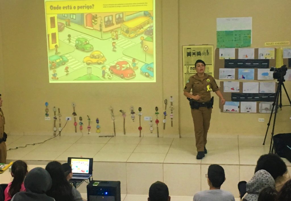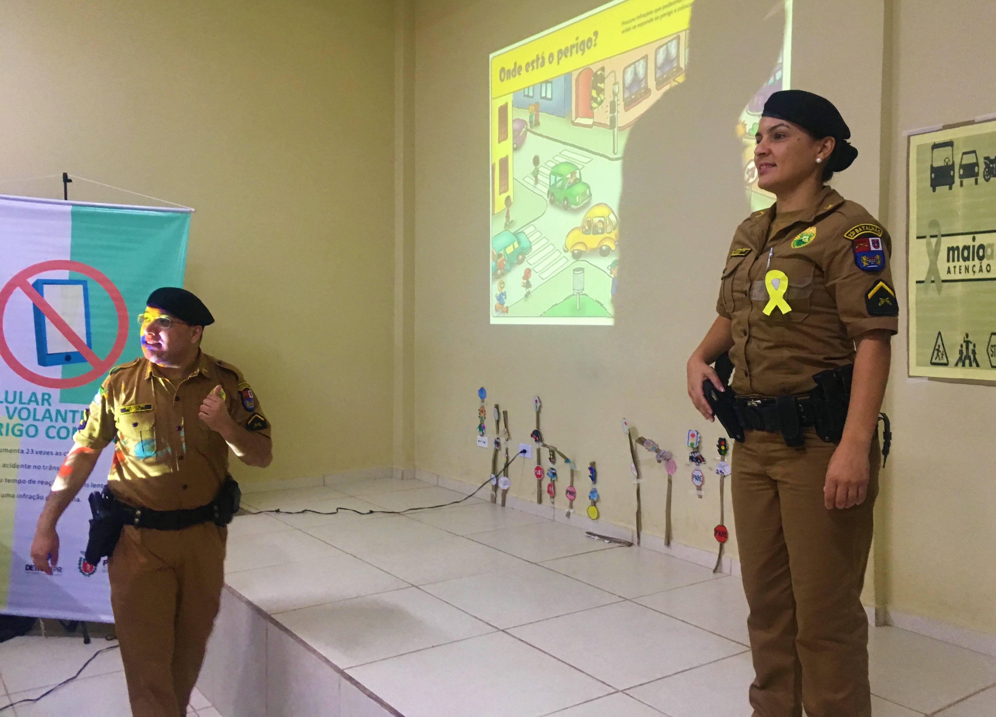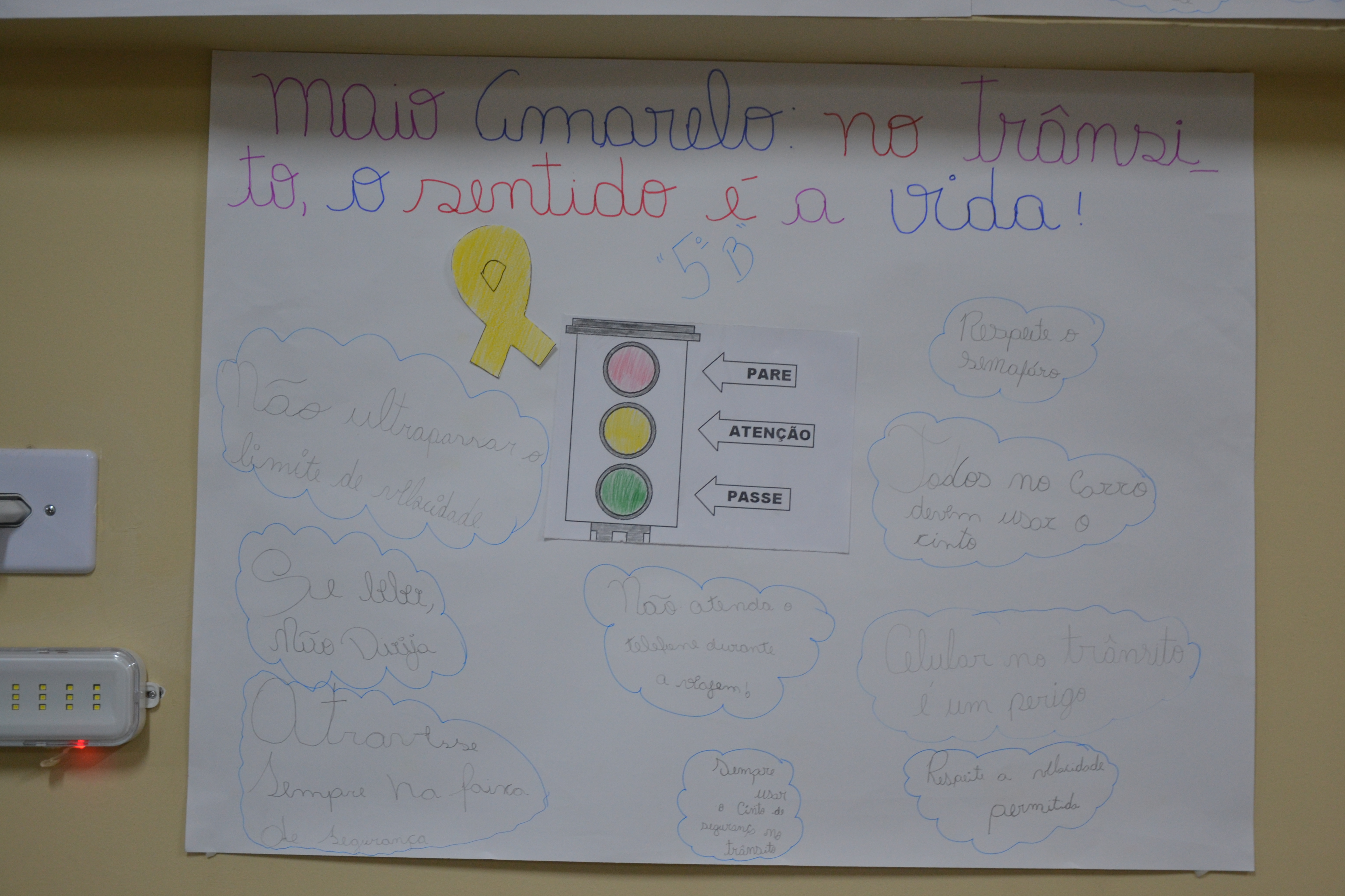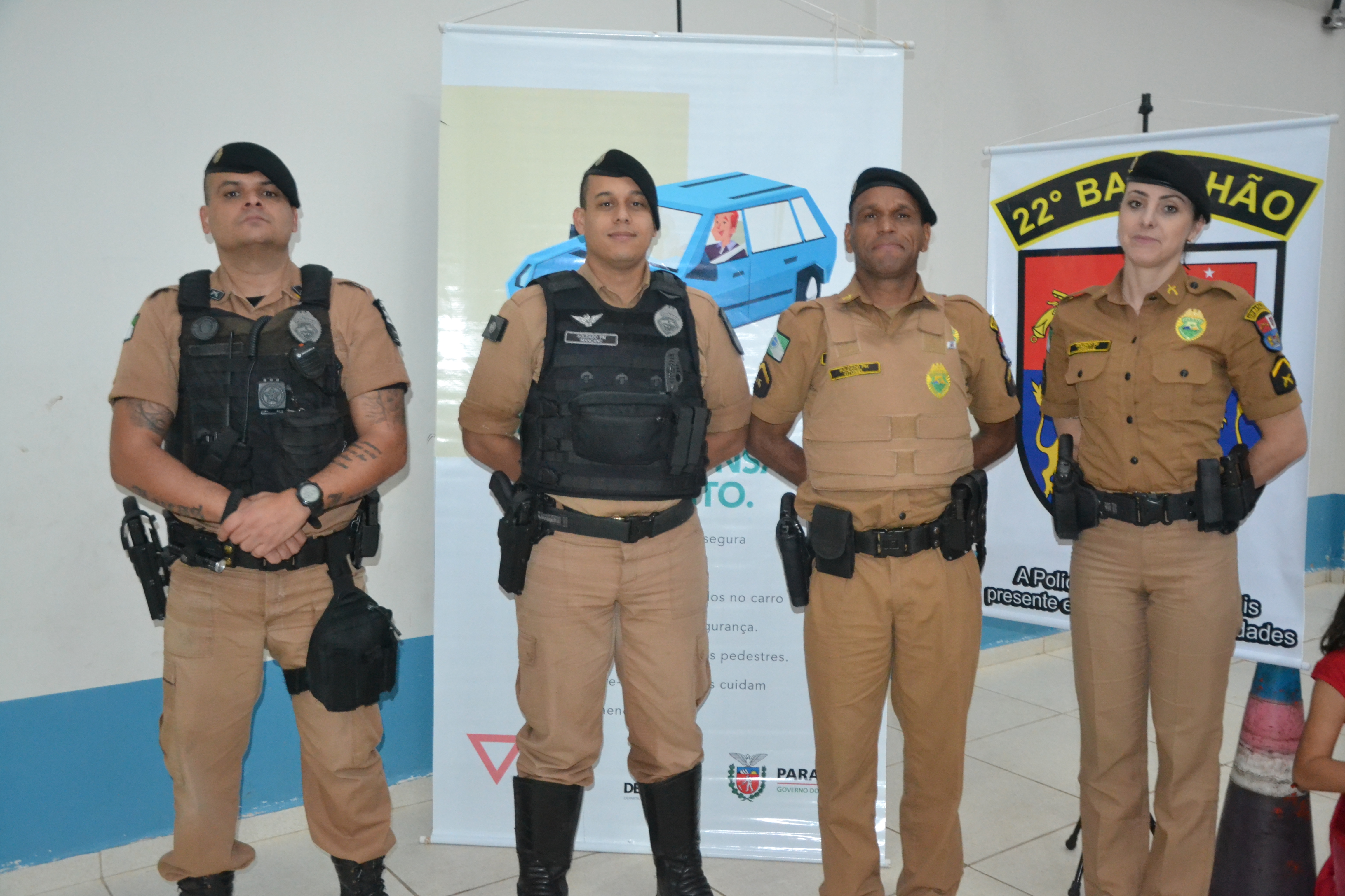 Policiais do 22 Batalhão, estiveram na tarde desta sexta-feira na Escola Municipal em Tempo Integral Ernesto Ferreira Santiago, Ensino Fundamental, localizada na Rua José da Silva Fontoura, na Vila Liberdade, realizando palestras referente a campanha Maio Amarelo “Vida no Trânsito”.