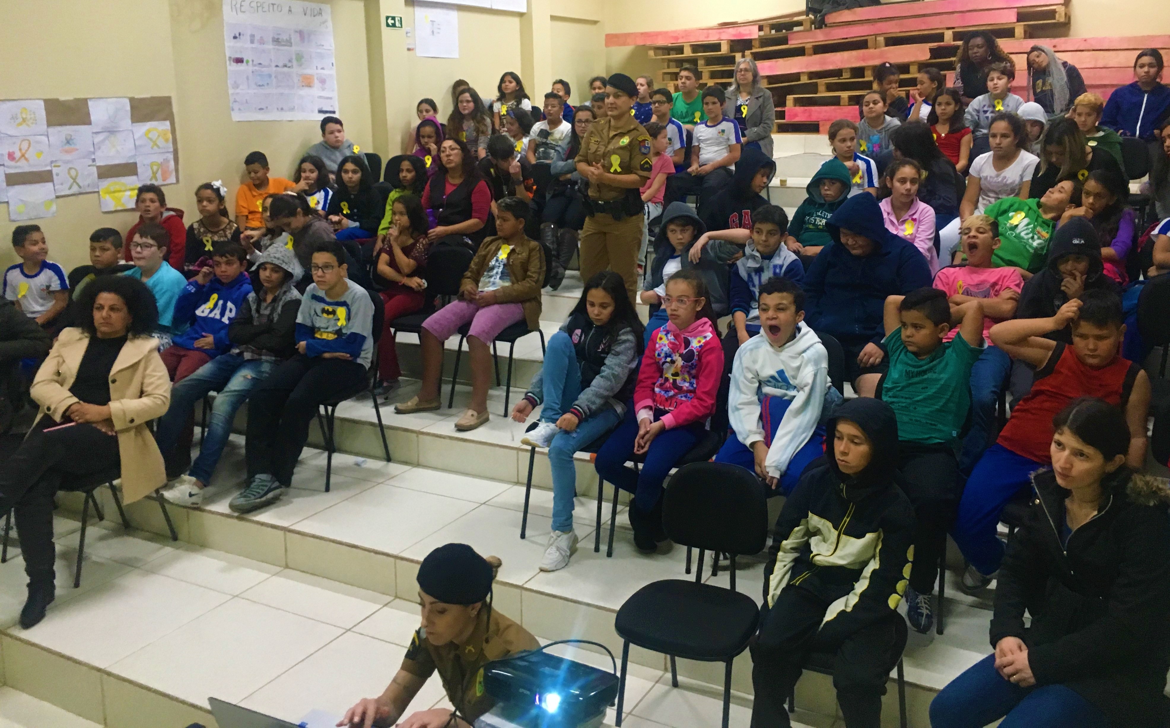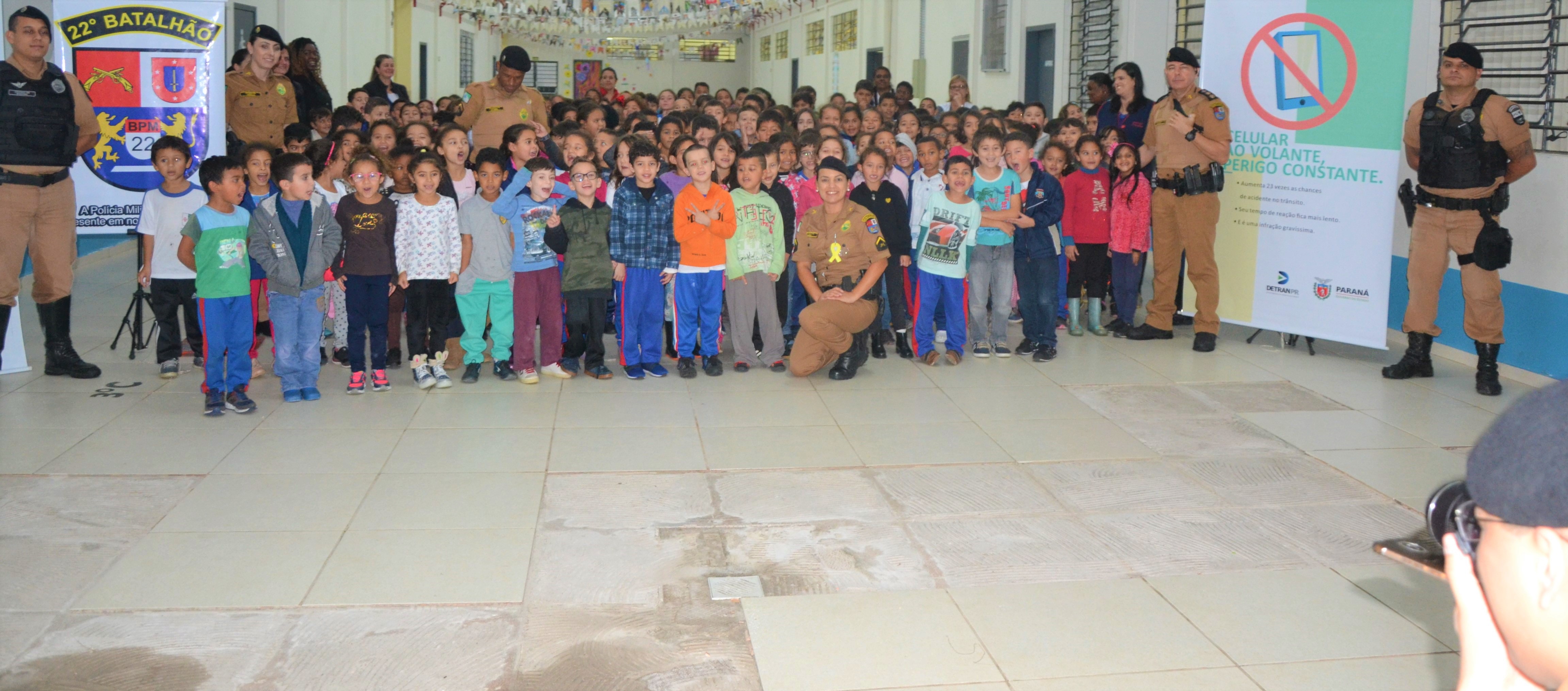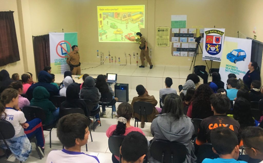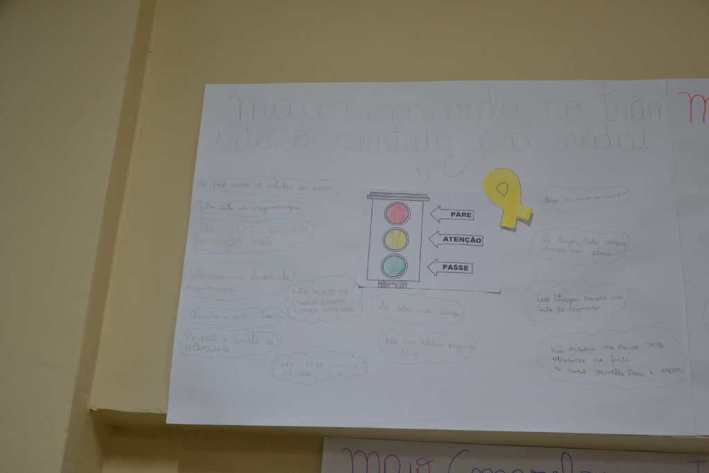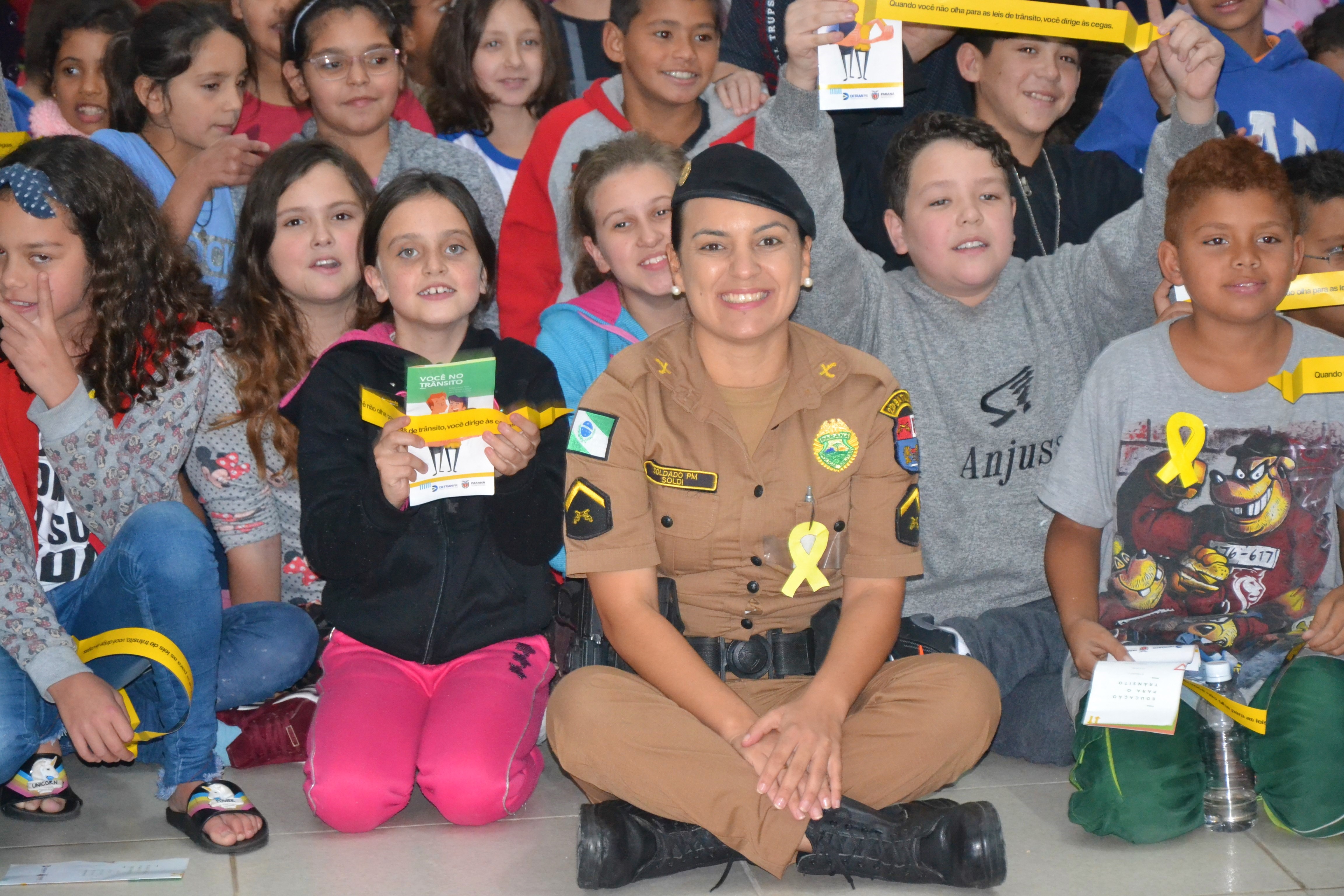 Policiais do 22 Batalhão, estiveram na tarde desta sexta-feira na Escola Municipal em Tempo Integral Ernesto Ferreira Santiago, Ensino Fundamental, localizada na Rua José da Silva Fontoura, na Vila Liberdade, realizando palestras referente a campanha Maio Amarelo “Vida no Trânsito”.