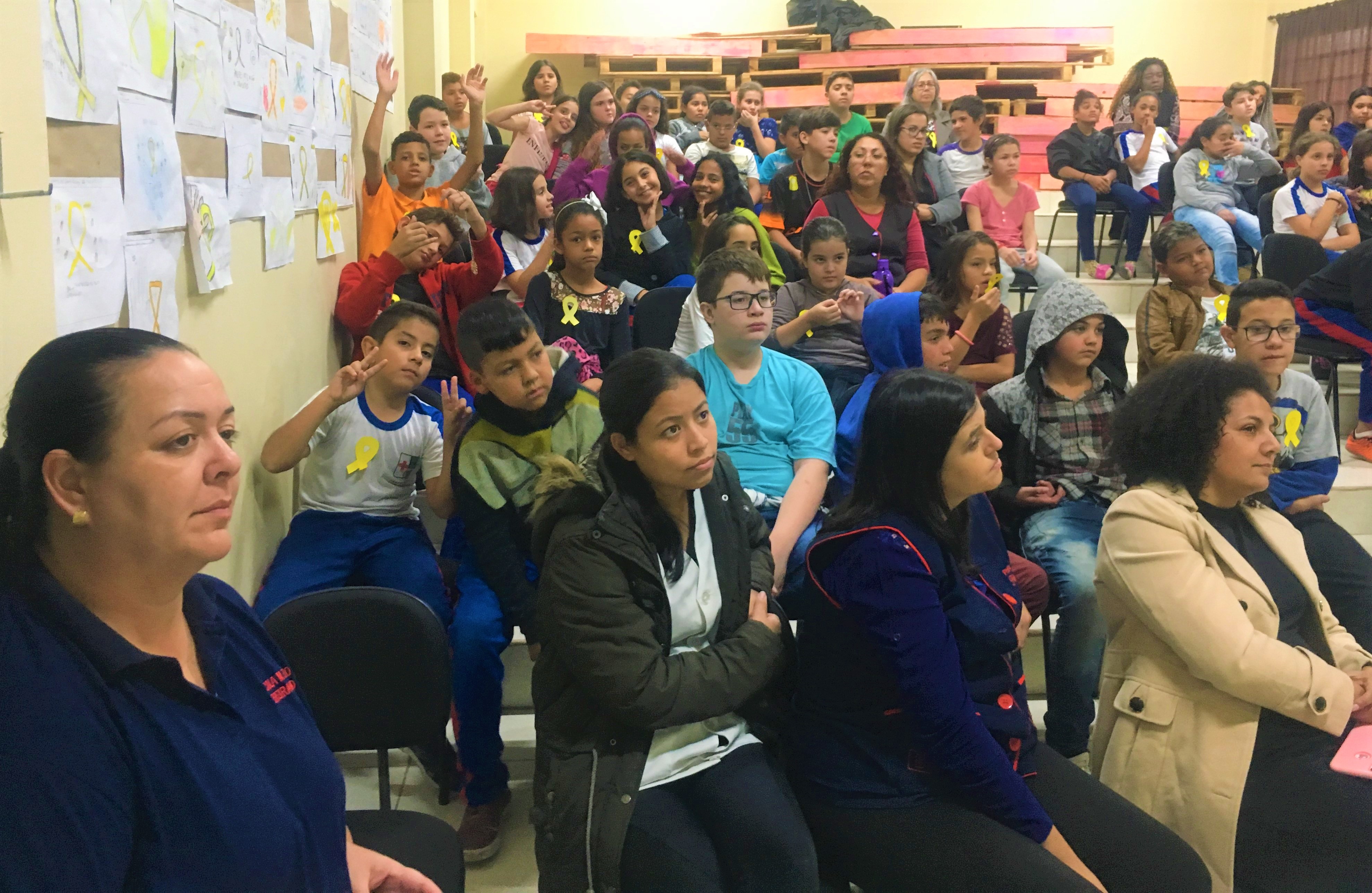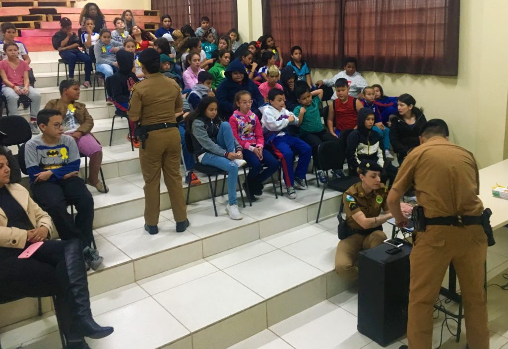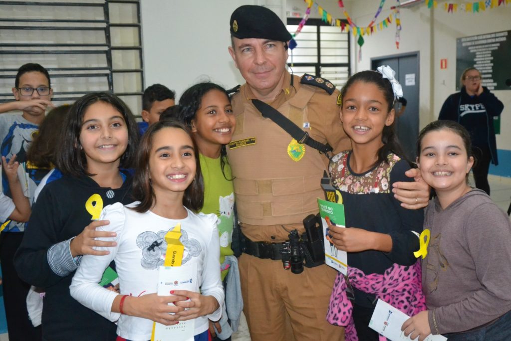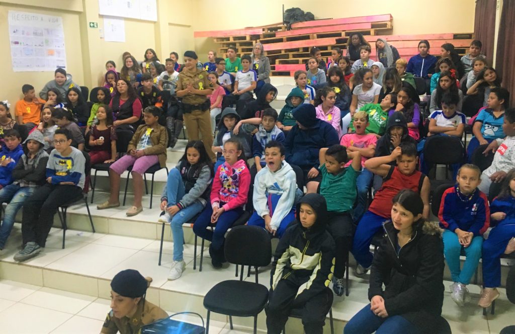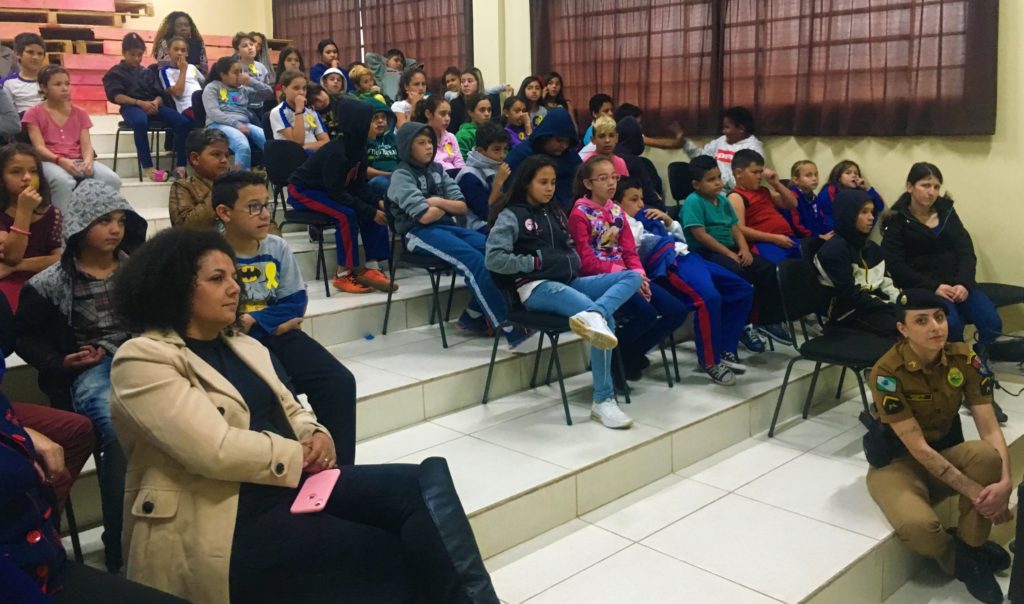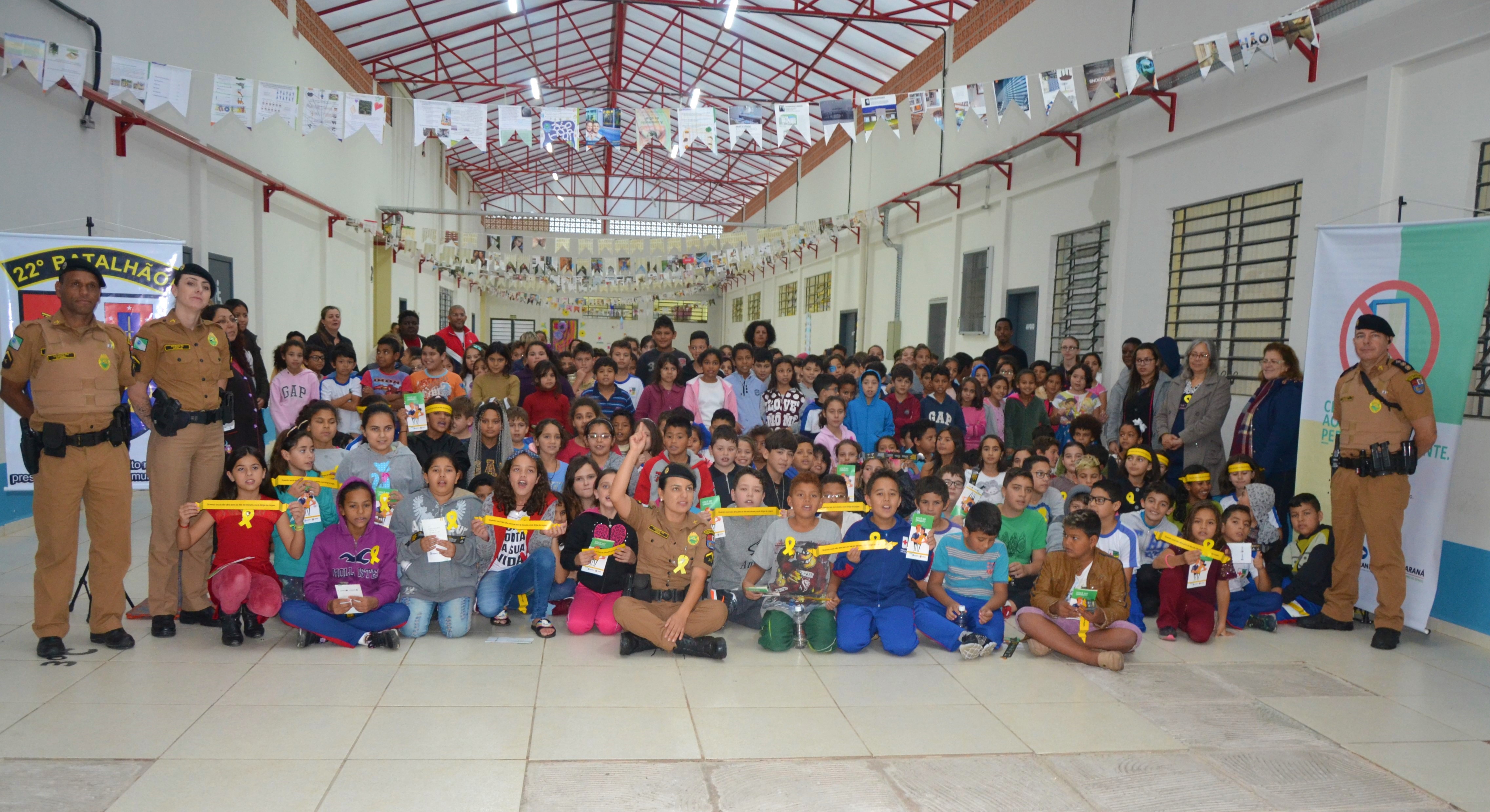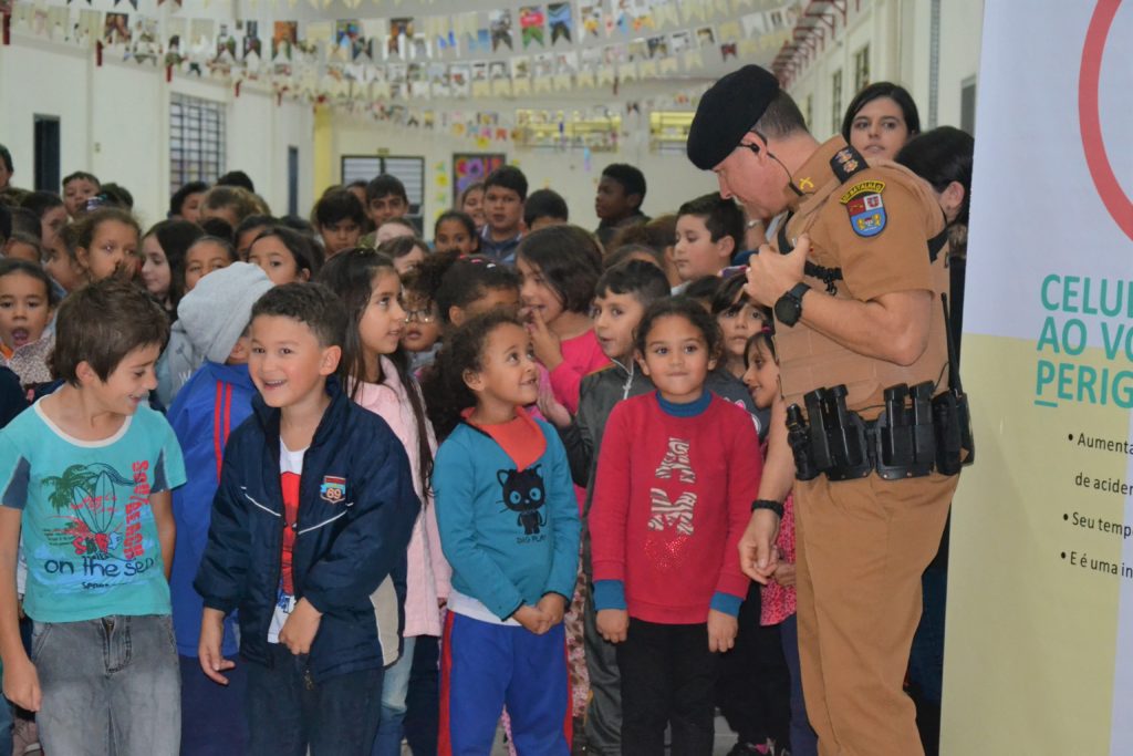 Policiais do 22 Batalhão, estiveram na tarde desta sexta-feira na Escola Municipal em Tempo Integral Ernesto Ferreira Santiago, Ensino Fundamental, localizada na Rua José da Silva Fontoura, na Vila Liberdade, realizando palestras referente a campanha Maio Amarelo “Vida no Trânsito”.