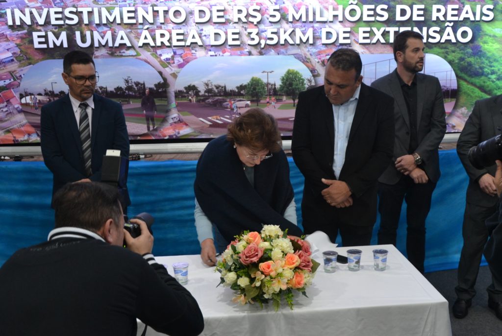 Na terça-feira(18), no Teatro da Regional Maracanã , a Prefeita Beti Pavin e o vice-prefeito Sérgio Pinheiro assinaram a Ordem de Serviço para o começo das obras do Parque Linear do Palmital, no bairro Guaraituba, um dos maiores da Região Metropolitana de Curitiba (RMC).