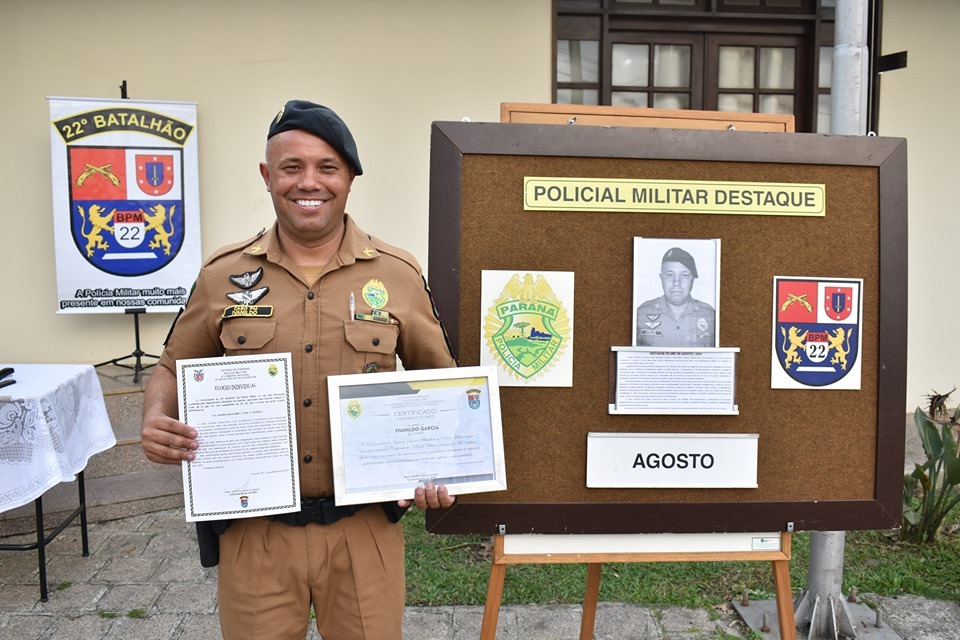 Na tarde da última quinta-feira (12), o 22º batalhão realizou o evento de destaque do mês de agosto e o homenageado foi o cabo Ivanildo, pertencente ao Pelotão de Comando e Serviços (PCS). O 22º Batalhão realiza mensalmente o evento para lembrar àqueles que se destacam em serviços operacionais e/ou administrativos e o cabo Ivanildo foi evidenciado pelas suas atividades administrativas executadas constantemente na região da unidade.