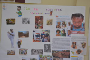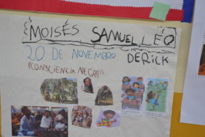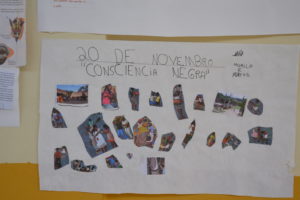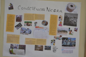 O trabalho da Consciência Negra como cartazes, máscaras, vasinhos africanos, colares e bonequinhas, foram realizados durante a semana nas aulas de história e geografia pelos alunos da professora Andressa Viana, e alunos de Arte e Ensino religioso da professora Mariselva Cavali. Os alunos também participaram da palestra e da oficina de tranças afro com a professora Deborah Caroline Pereira .