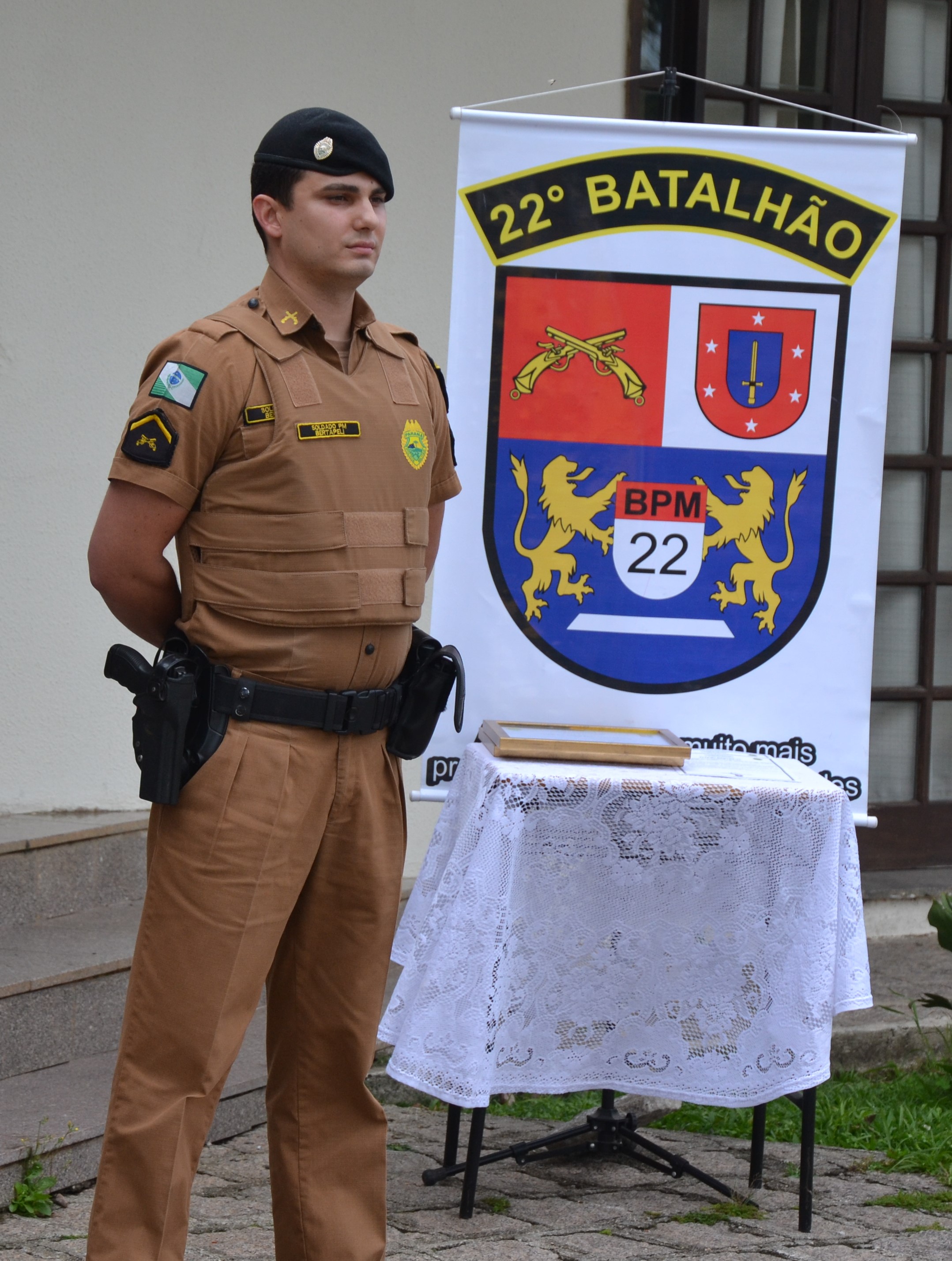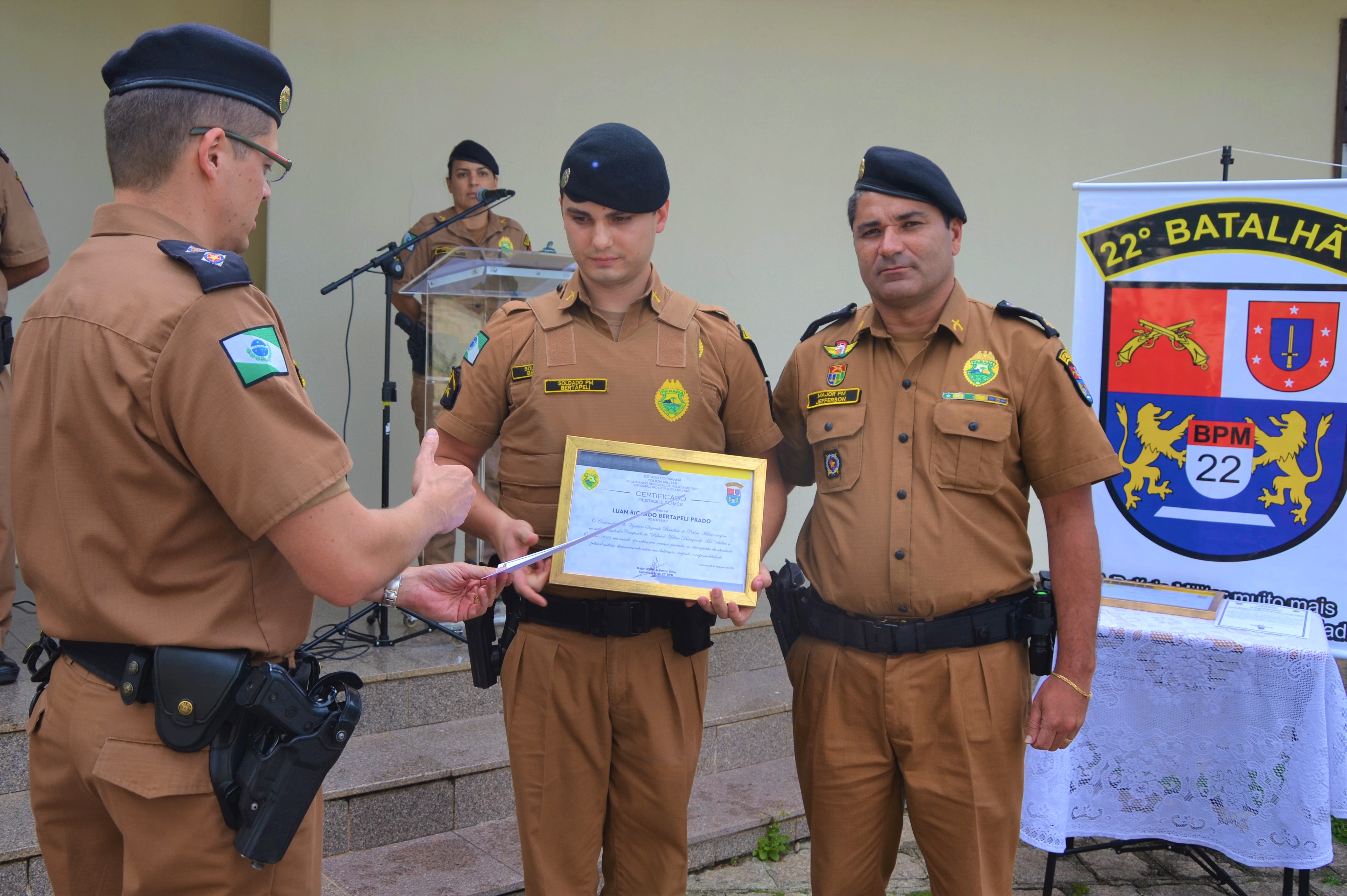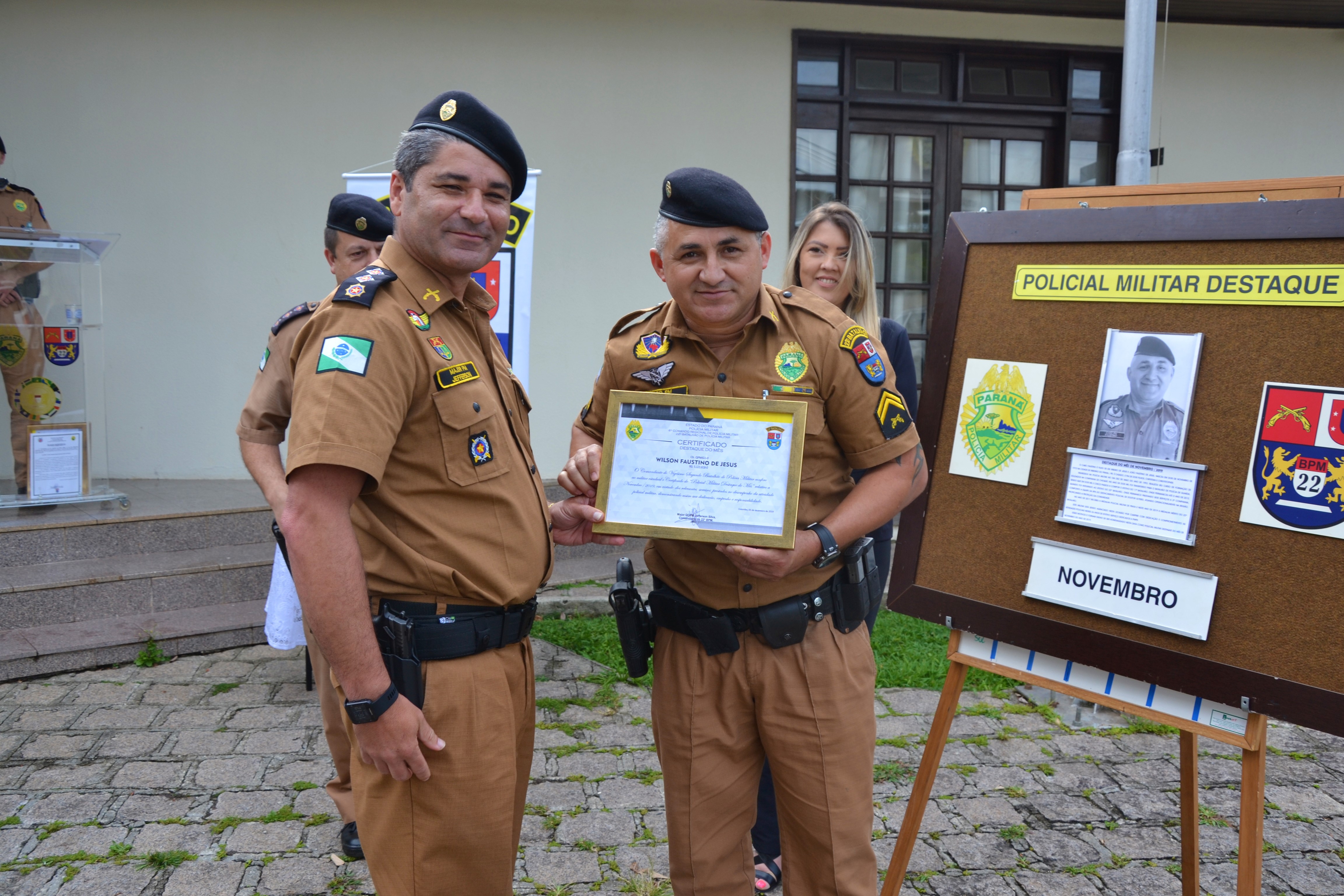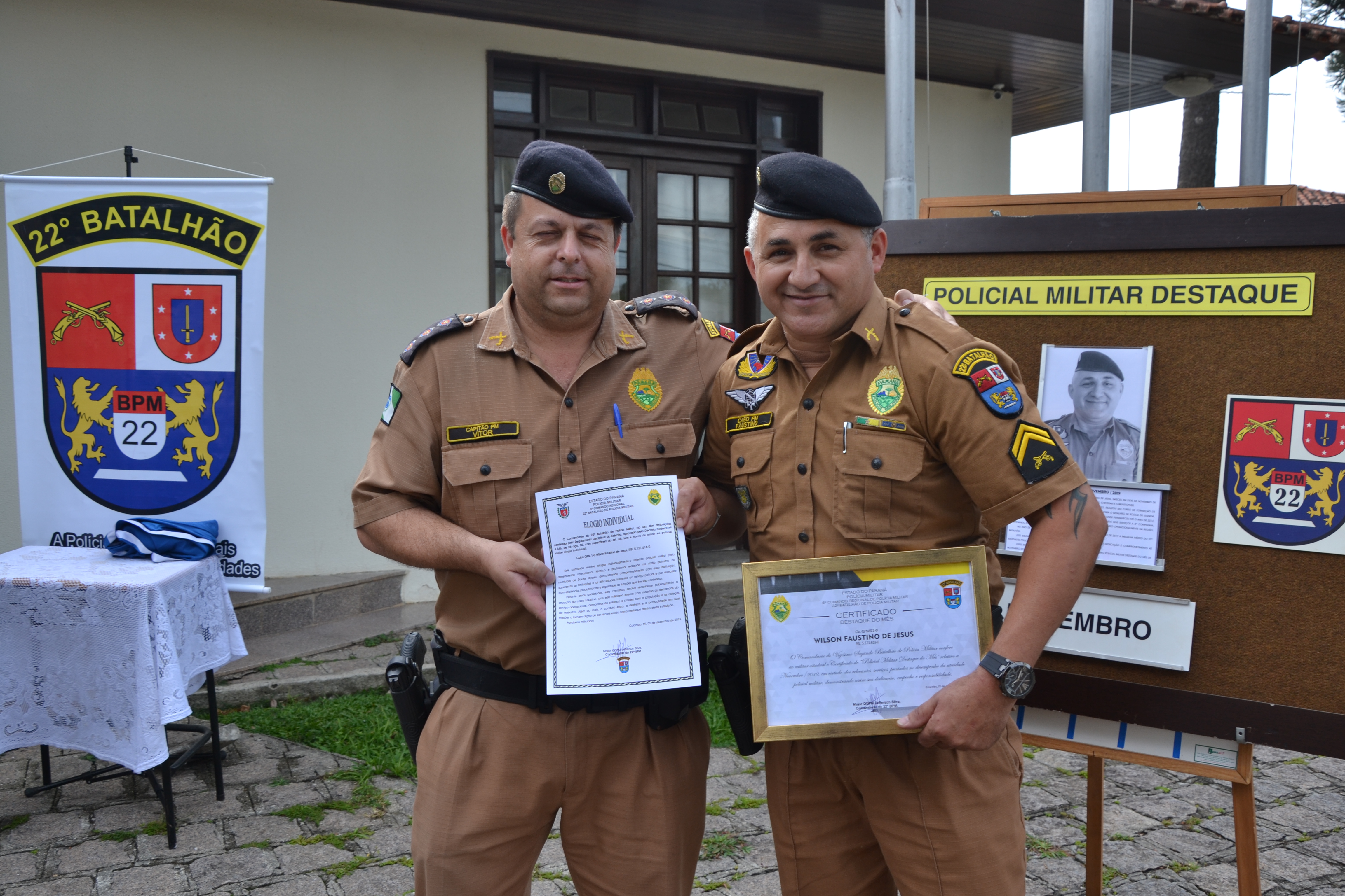 Na tarde desta terça-feira (19), o 22º batalhão realizou o evento de destaque do mês de novembro e o homenageado foi o cabo Faustino, pertencente à 3ª Companhia PM, situada em 22º Batalhão Rio Branco do Sul.