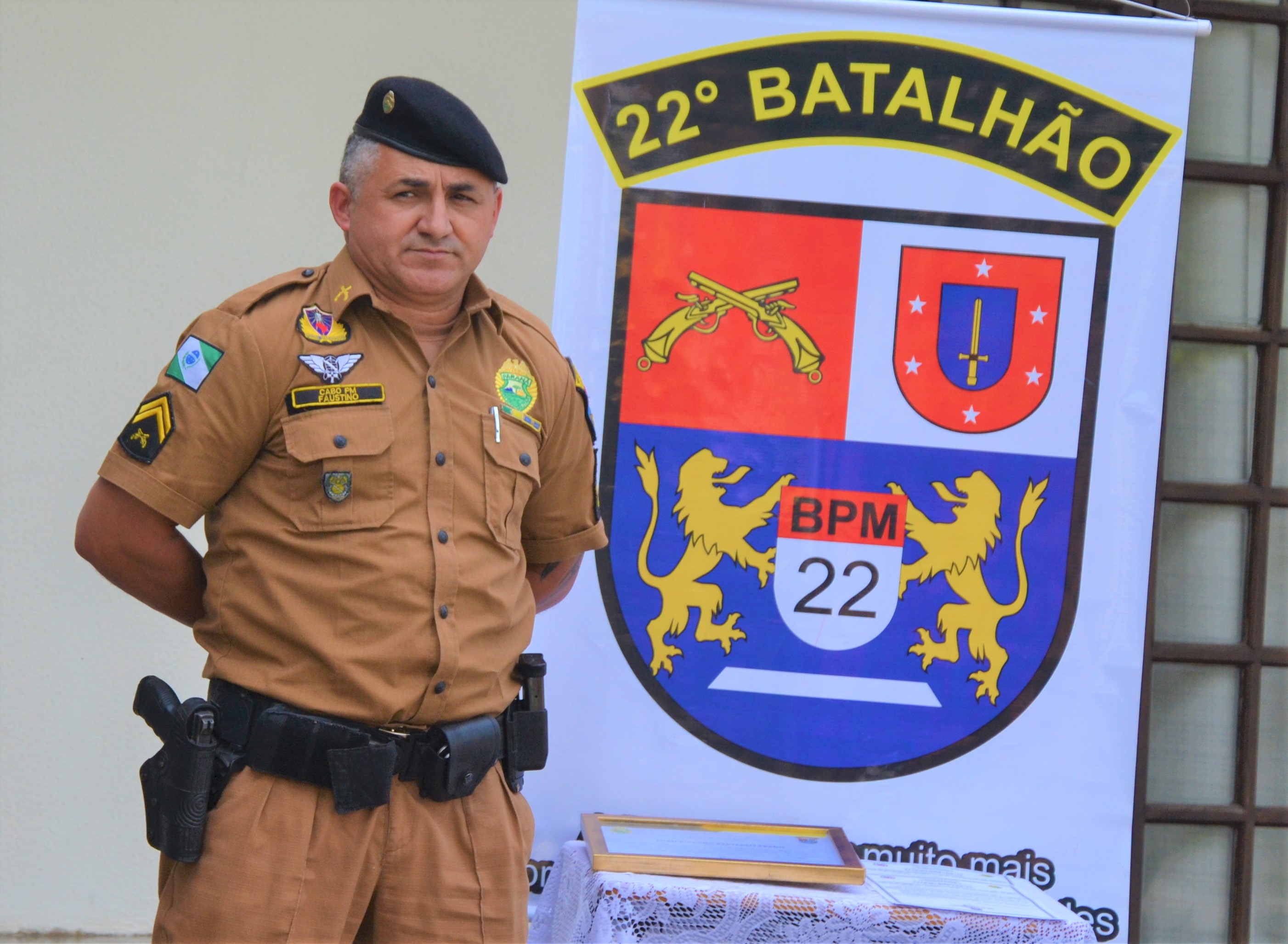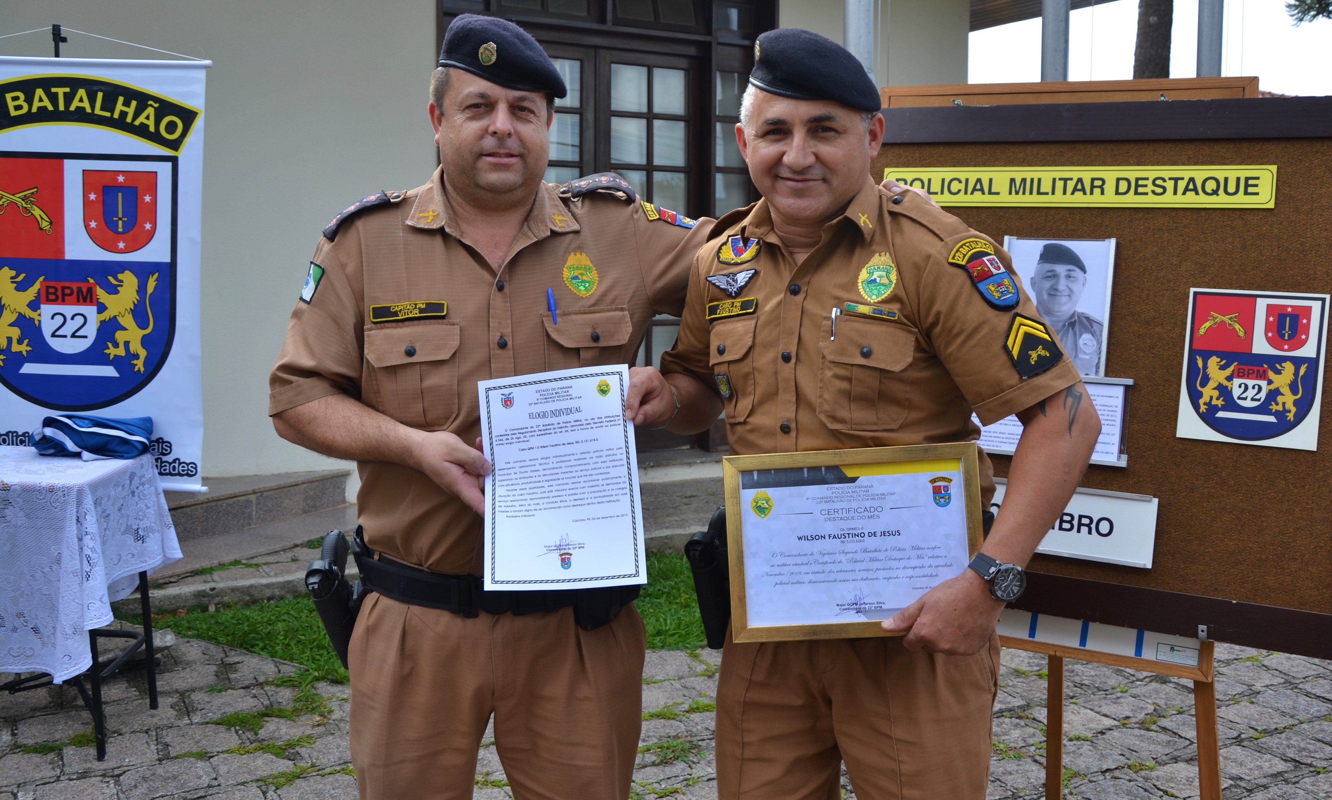 Mensalmente, o 22º Batalhão realiza o evento para lembrar àqueles que se destacam em serviços operacionais e/ou administrativos e o cabo Faustino foi evidenciado pelas suas atividades operacionais na região de Doutor Ulysses.