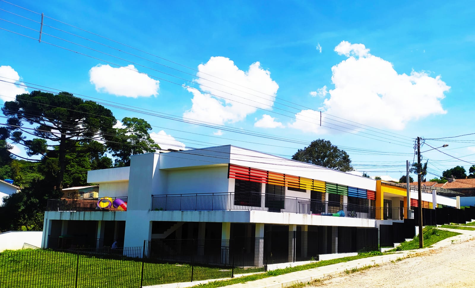 O novo CMEI contempla oito salas de aula com sanitários privativos e solário, um refeitório amplo, pátio coberto, playground, despensa, cozinha, lavanderia, depósito, almoxarifado, sala de coordenação, secretaria e sala de professores, acesso independente entre alunos e visitantes, 16 vagas de garagem cobertas, totalizando 1.362,27m² de área construída.