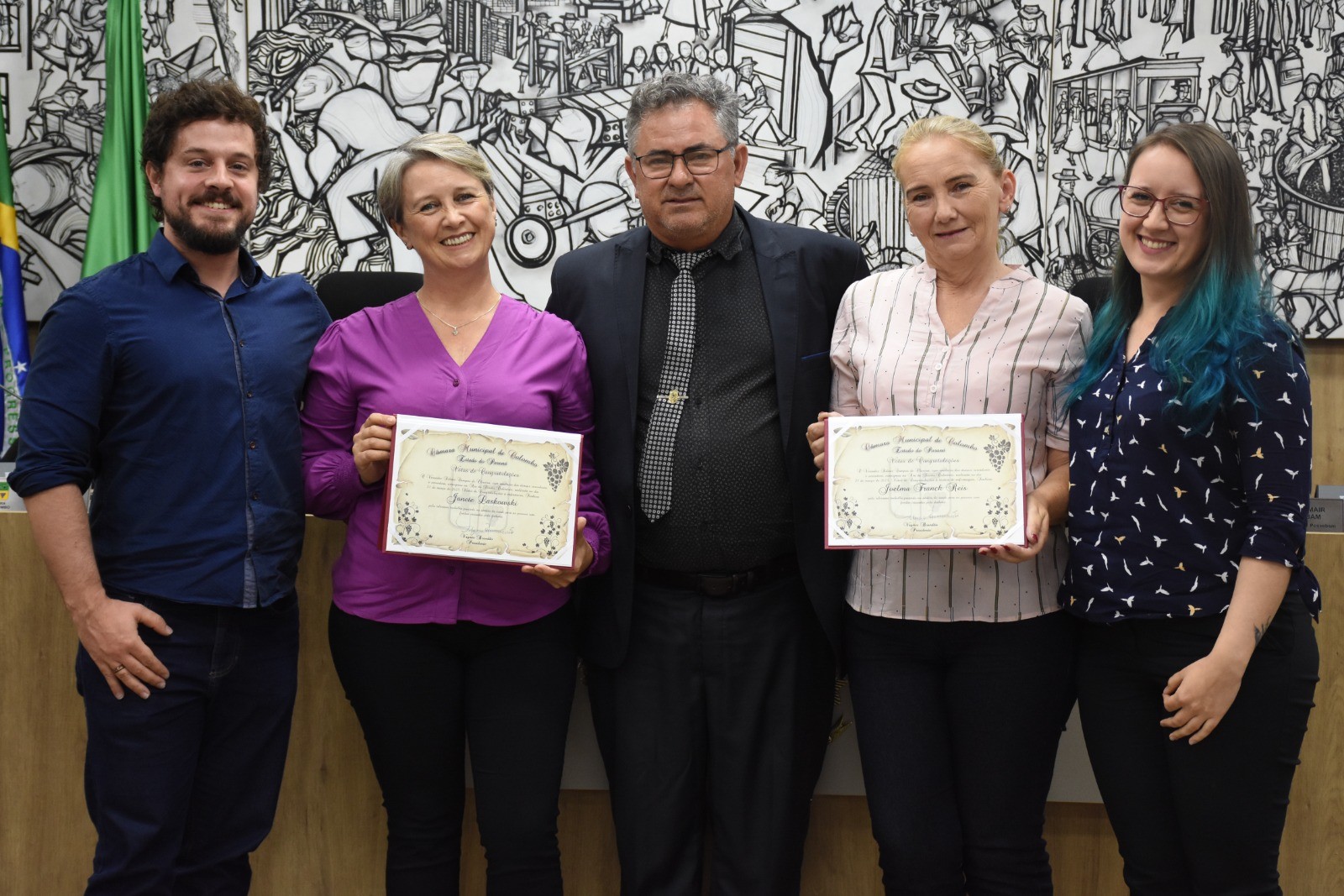 Uma demonstração de valorização e reconhecimento ao trabalho de pessoas que se destacam em diversos segmentos da sociedade. A noite desta quinta-feira(23/03), foi marcada por lágrimas, sentimentos, gratidão e orgulho na realização de entrega de “Votos de Congratulações” na Câmara Municipal de Colombo, para 21 pessoas que atuam no meio empresarial, nas áreas da saúde, eventos, gestão pública e segurança, inclusive o vice-prefeito, Alcione Luiz Giaretton que esteve presente e foi um dos homenageados.