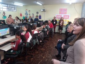 A Prefeitura de Colombo por meio do Departamento de Tecnologia Educacional em parceria com a Arka Digital, disponibiliza aos estudantes um ecossistema de aprendizagem digital. Diante disso, a equipe de Inovação Tecnológica recebeu na Escola Municipal Arlindo Andretta um grupo com visitantes de Brasília, Ponta Grossa e Colégio Militar – o objetivo foi mostrar aos visitantes como o uso das tecnologias digitais em sala de aula vem mudando a rotina dos alunos.