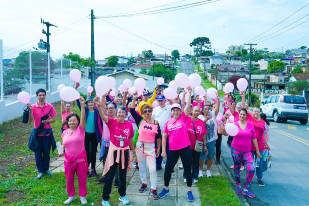 Na manhã desta quinta-feira, 24 de outubro, Colombo promoveu mais uma importante ação da campanha Outubro Rosa: a caminhada “Cuidar da Saúde é um Ato de Amor”. O evento, organizado pela Prefeitura de Colombo, por meio das Secretarias de Saúde e Esporte, reuniu diversas pessoas no Ginásio de Esportes CAIC, no bairro São Gabriel, com o objetivo de promover a conscientização sobre a prevenção e o diagnóstico precoce do câncer de mama.