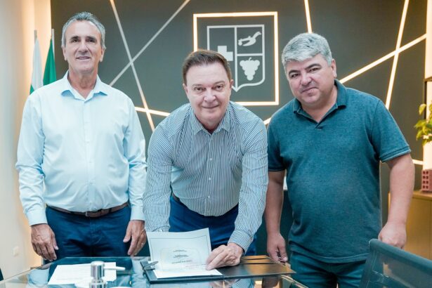 Nesta quarta-feira (26), o Prefeito Helder Lazarotto, acompanhado do presidente da Câmara Municipal, vereador Joel Bueno, realizou a transmissão do cargo para o vice Paulo Coradin, que assume interinamente a Prefeitura pelos próximos dez dias. A medida se dá em razão da viagem oficial do prefeito à China, onde participará de uma missão técnica organizada pelo Governo do Estado do Paraná, com foco em tecnologia para cidades inteligentes e segurança pública.