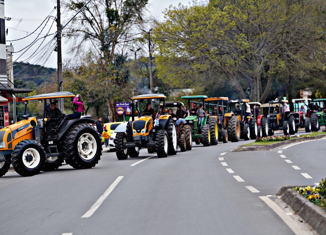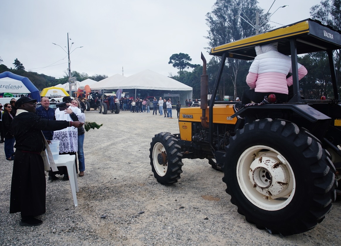 No domingo, a programação começou com a Santa Missa na Igreja Matriz, seguida do tradicional Tratoraço, que percorreu as ruas da cidade até o Parque Municipal da Uva. Em seguida, a festa seguiu com um emocionante desfile de dezenas de tratores pelas principais vias de Colombo. O cortejo encantou os moradores e destacou o maquinário agrícola como símbolo de trabalho, conquista e progresso no campo. O desfile terminou no Bosque da Uva, onde foi realizada a tradicional bênção dos tratores e dos agricultores, encerrando a manhã com um gesto de fé e gratidão.