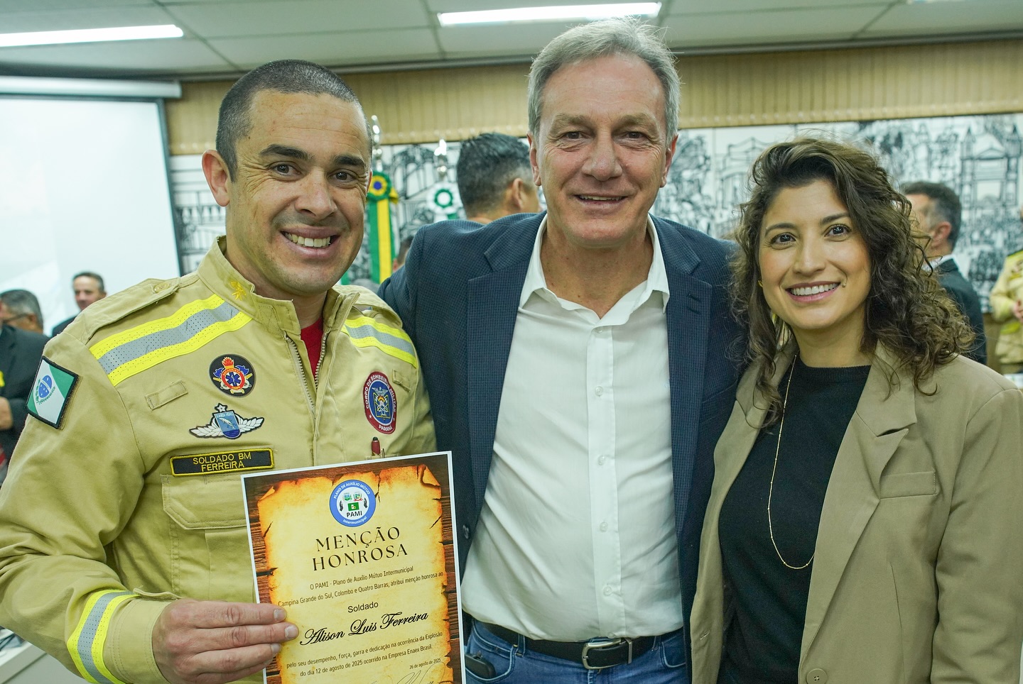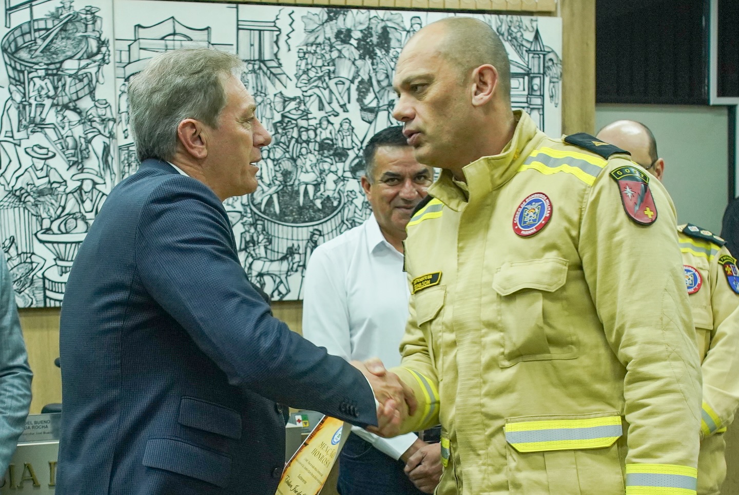 A solenidade contou ainda com a presença do Comandante do 1º Comando Regional de Bombeiro Militar, Coronel QOBM Emerson José Guimarães Ferreira, do Presidente da Câmara Municipal, Joel Bueno, e do Presidente do I PAMI, Marcelo Nogueira.