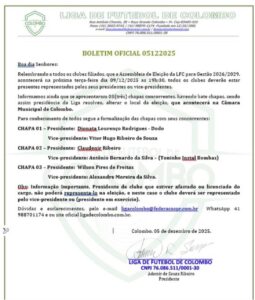 Na noite desta terça-feira (09), por volta das 20h, nas dependências da Câmara de Vereadores, foi realizada a eleição para a presidência da Liga de Futebol de Colombo, entidade responsável pela organização de um dos maiores campeonatos amadores da Região Metropolitana de Curitiba.