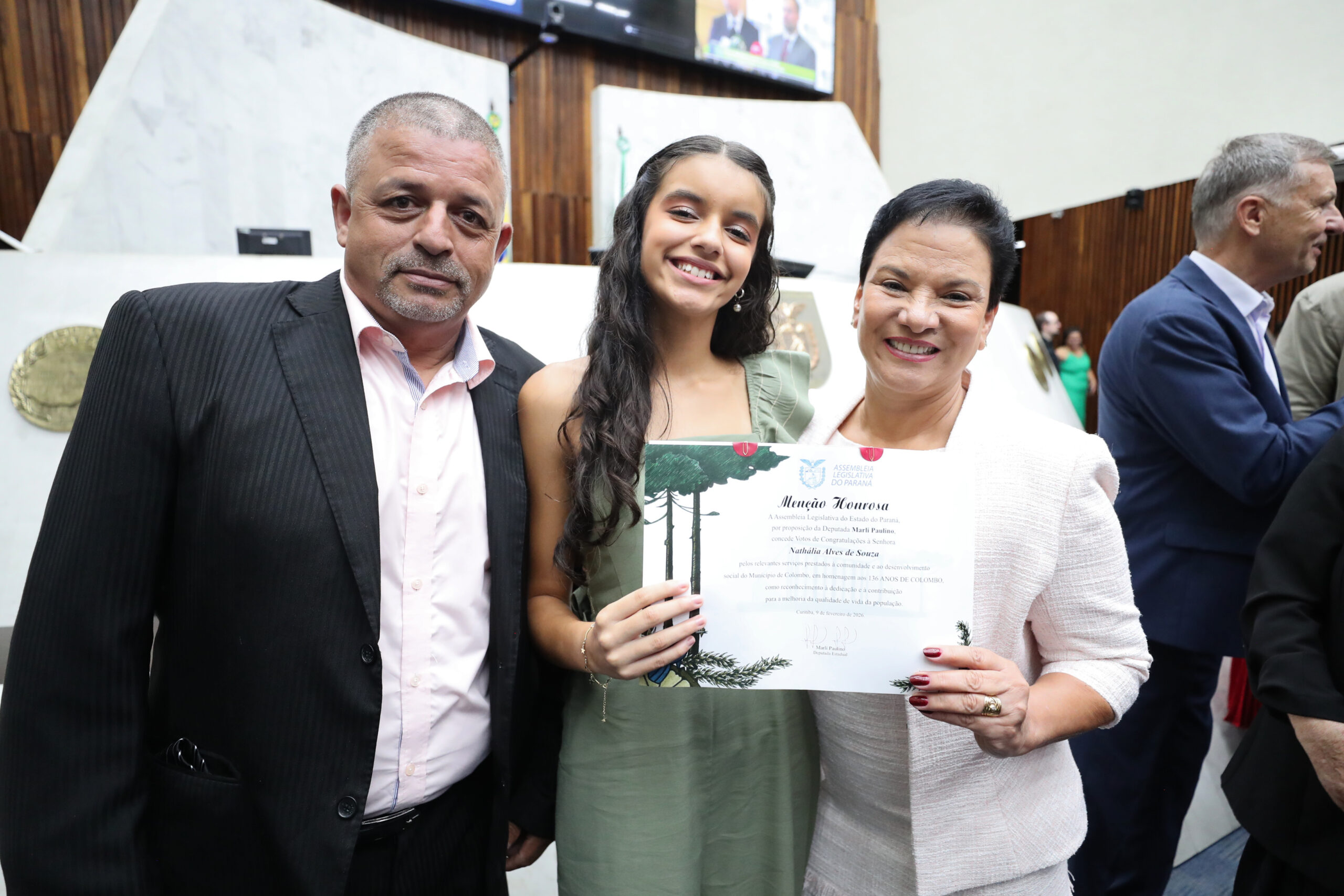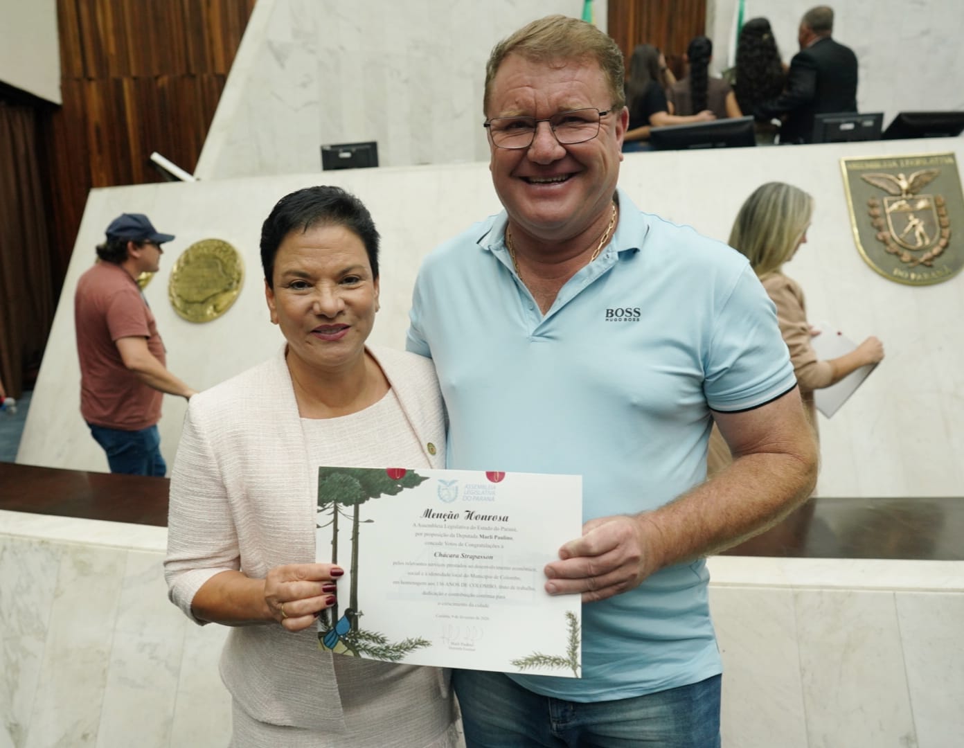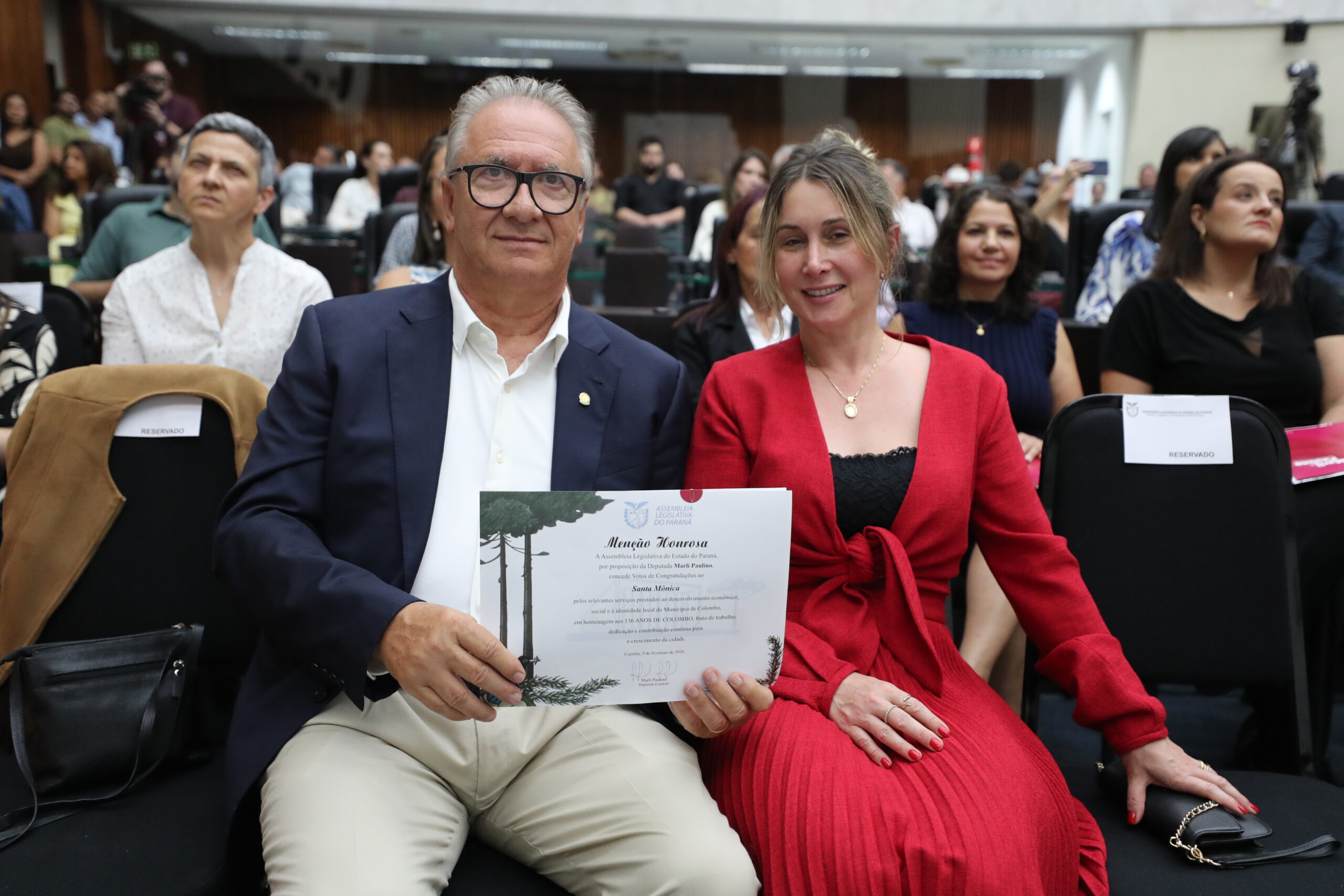 Os 136 anos de emancipação política de Colombo foram celebrados em grande estilo na última quarta-feira (25), durante sessão solene realizada na Assembleia Legislativa do Paraná. A homenagem foi proposta pela deputada estadual Marli Paulino (PSD) e reuniu autoridades estaduais e municipais, além de lideranças comunitárias, representantes de instituições e moradores do município.