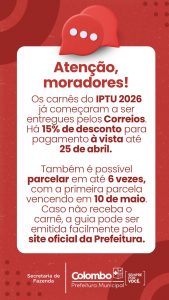 Por isso, é fundamental que os moradores fiquem atentos aos prazos de vencimento e realizem a emissão das guias online, garantindo o pagamento dentro do prazo.